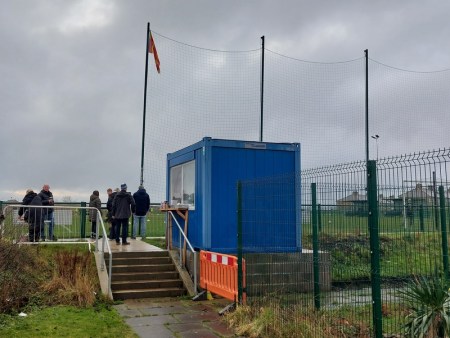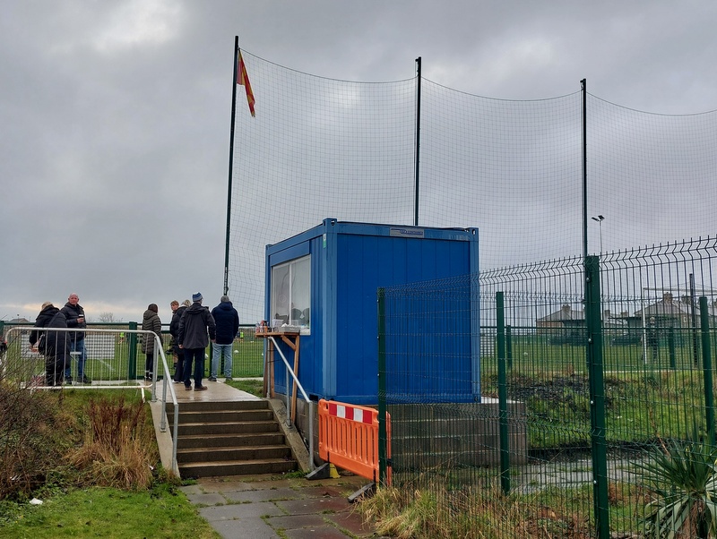 It was five quid admission and I bought myself a programme from the kiosk on the way in. It’s an improving set up with trees planted along two sides of the ground and some new fencing around the pitch and the ground perimeter. There was a small stand. It must be expensive bringing a ground up to standard when moving up the tiers, particularly for requirements such as hard standing.