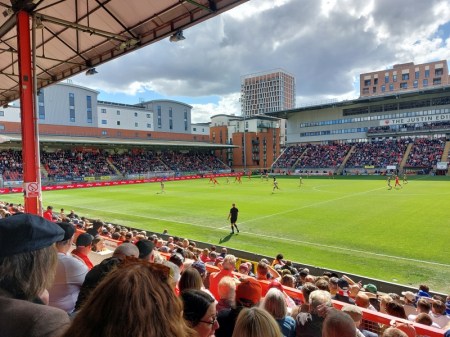 Both ends of the stadium were just grass and the running track around the pitch meant that we were further from the action than I’d have preferred.