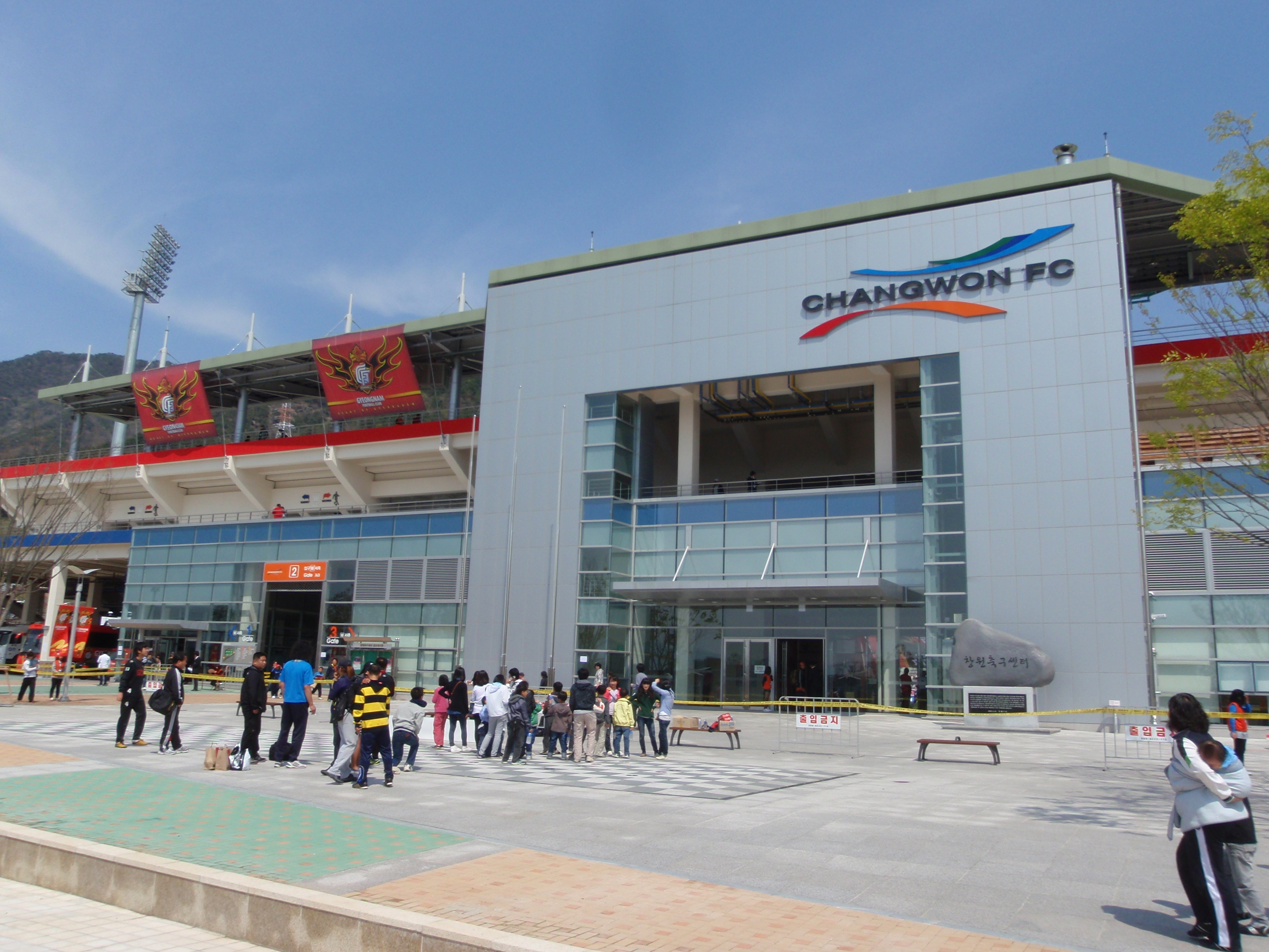 So, it was Sunday morning by the time I set off for Changwon. I caught the 9am KTX, changing at Miryang and passing the Cheongdo Bullfighting Stadium on the way before arriving at Changwon just after midday. I’d had a bit of a read about Changwon during the week and to be honest, it was probably just as well that I was only there for the afternoon, there didn’t seem a great deal else there that was worth seeing. It seemed to be mainly shopping malls and office blocks. I got a taxi into the city centre and then after some lunch, got another taxi to the ground.