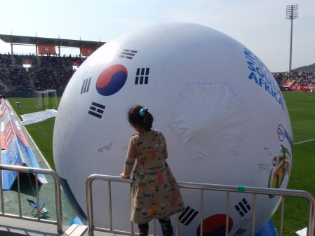 The official attendance was given as fourteen and a half thousand, but I reckon that there were more than a thousand empty seats, maybe two or three thousand in total, but even so, a twelve or thirteen thousand strong crowd in this stadium certainly made for a better atmosphere than the similar sized crowds at the much larger World Cup Stadiums that I’d been to at Seoul, Incheon and Jeonbuk.