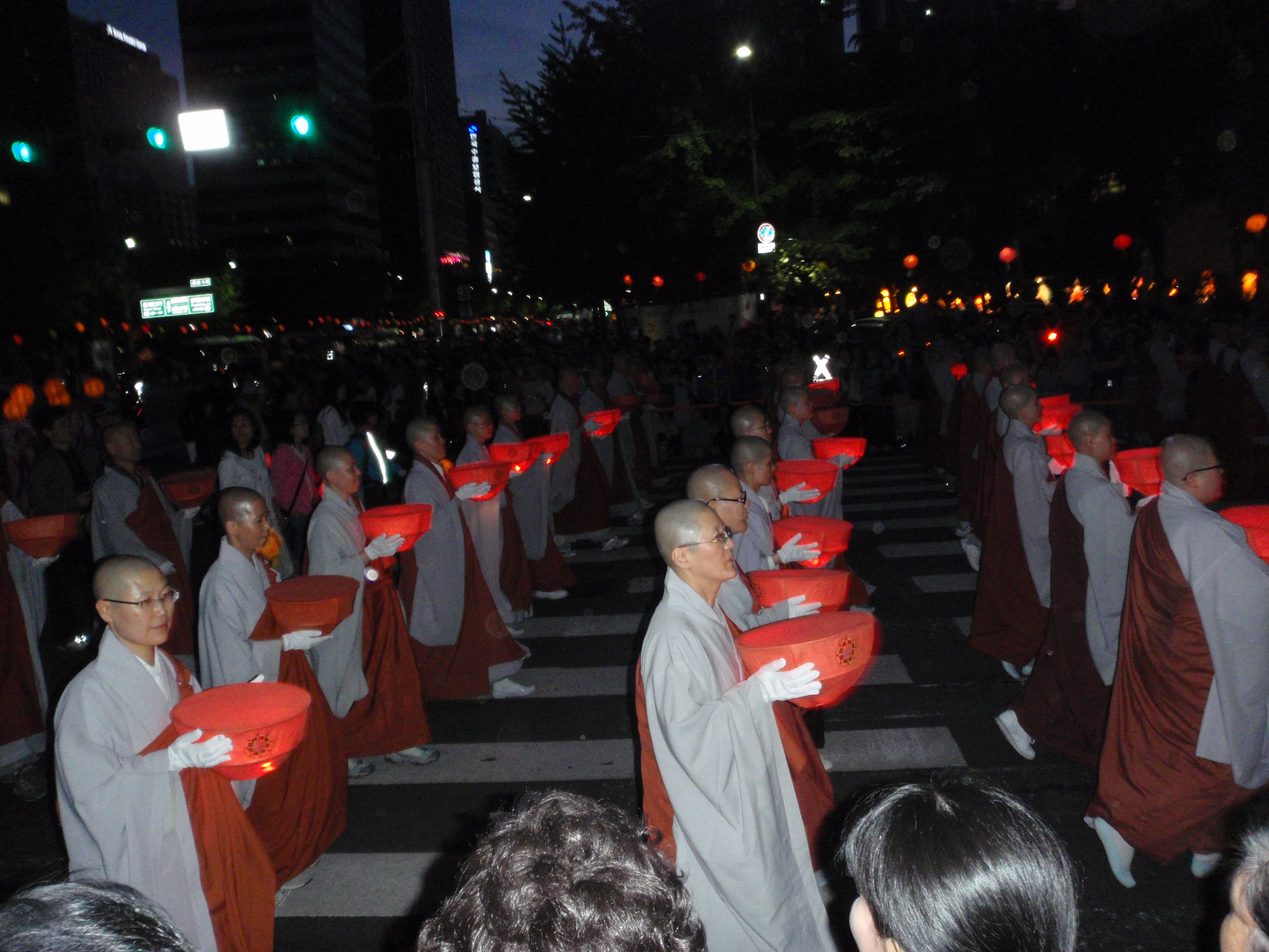 So next up was the Lantern Festival. My plan had been to spend a couple of hours there and then head off to the match. When we got there the streets were packed with people. There were stalls along the roadside offering various lantern making activities, insights into various different types of Buddhism and selling a variety of food. I had some sort of beans from Nepal that looked like peas, some of those clear noodles and some spicy dumpling that might have been pork. We were given lanterns with candles in for the parade later that evening and I thought that rather than dash off I’d rather miss the football on this occasion and stay at the festival. I might not get another chance to experience it all again, whilst I’d be watching South Korea play Argentina in the World Cup in a months time, that would probably be a bit better than a friendly against Ecuador. Apologies to those who read this far hoping for a match report, but that’s a risk you take with this blog. Still, if you keep reading I might tell you the score.