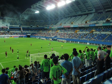 As kickoff approached I took my place in the North Stand with the Jeonbuk supporters. There were probably a few hundred of them there in a crowd that I’d estimate to be about five thousand. The stadium was well designed, with no running track and steep slopes to the stands ensuring that the fans were close to the pitch. I got a couple of Hite beers to see me through the first half as the teams came out and was pleased to see that Lee Dong Gook was back in the starting eleven after his two goals as a substitute the previous week.