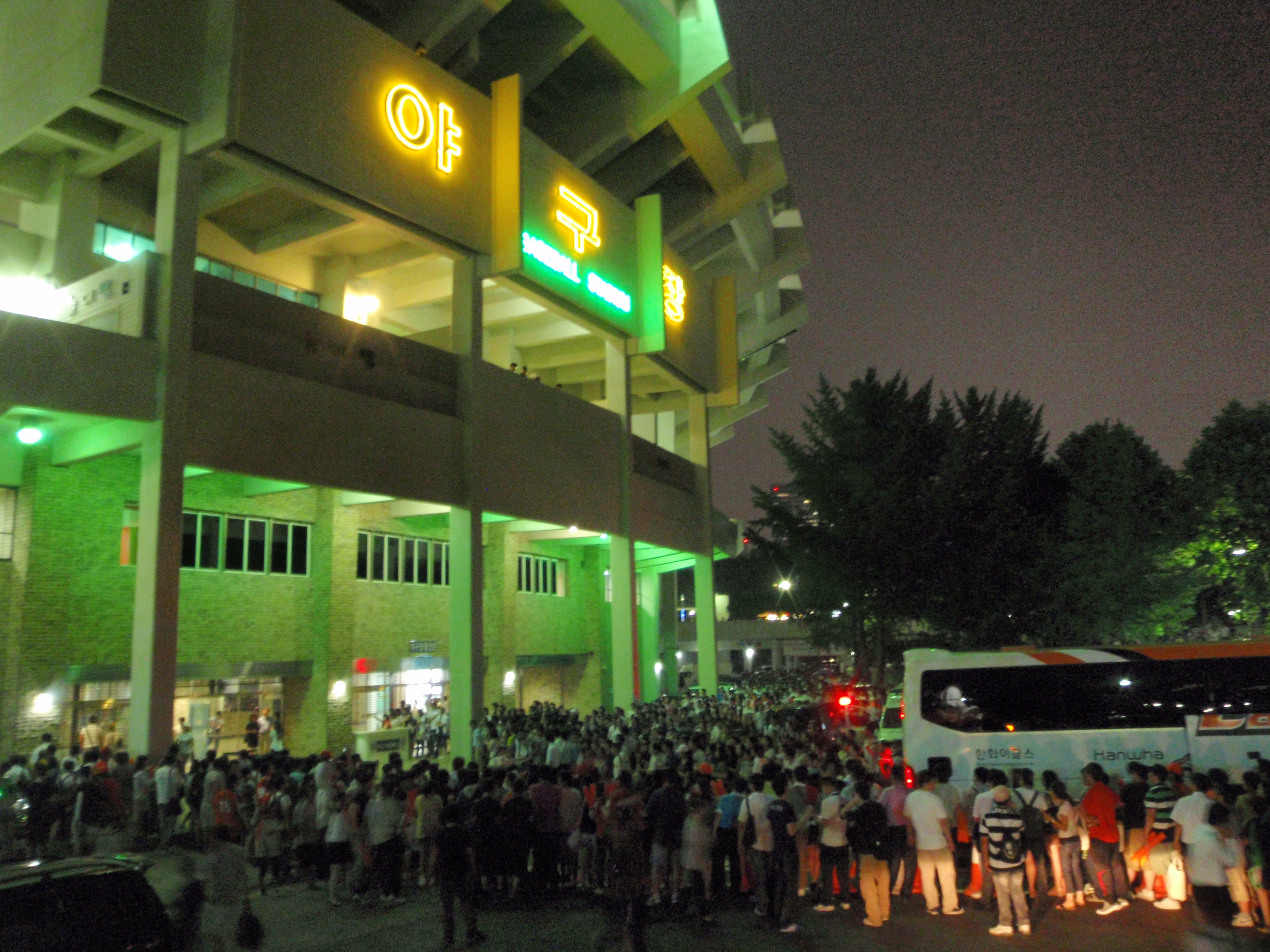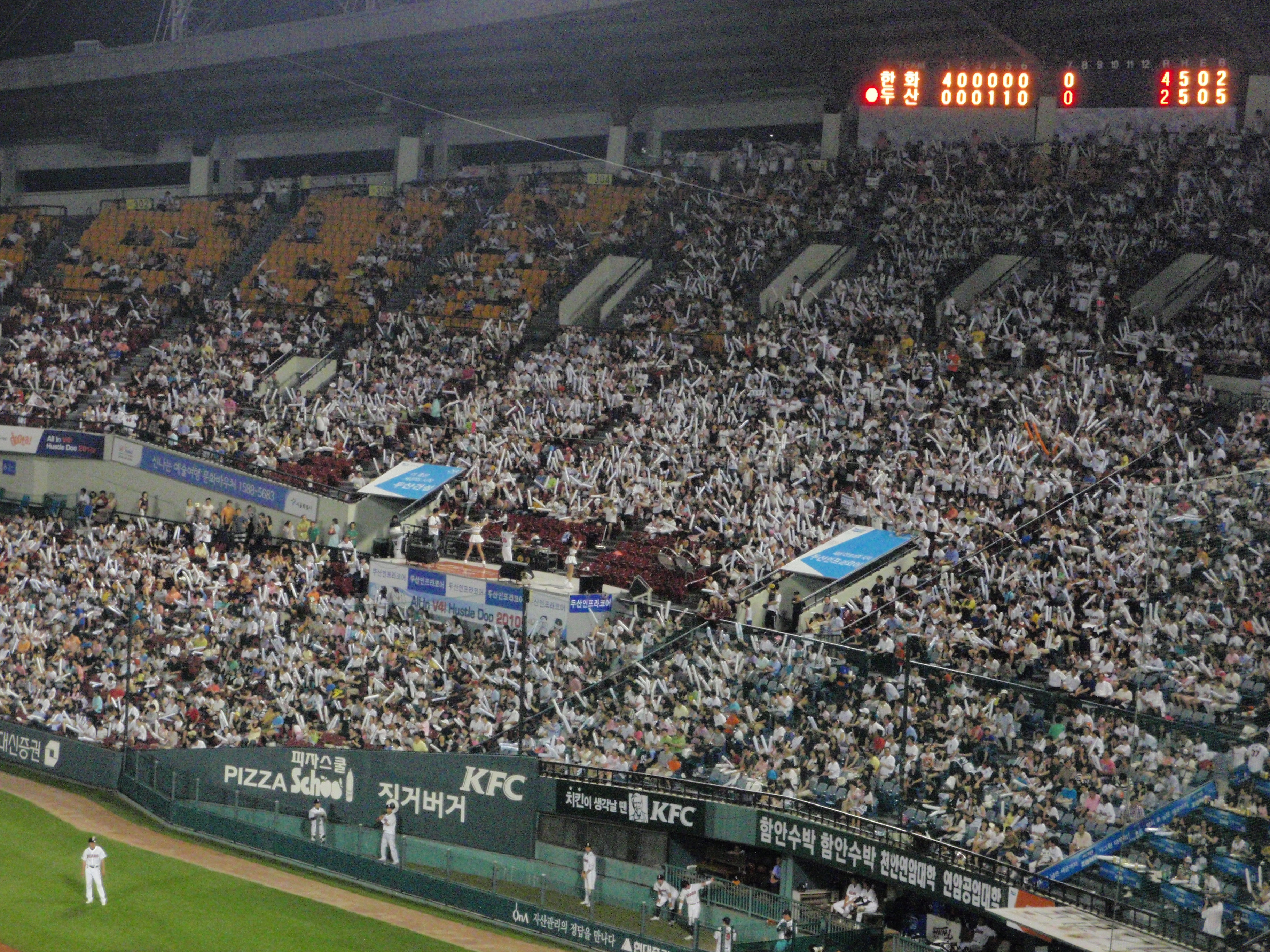 This one was a bit of a last minute decision. I didn’t have anything arranged for Friday evening and as I was walking out of work I thought, yeah, why not? Fortunately, my apartment is only two or three minutes walk from my office and I quickly got changed, travelled the three stops on the subway and was outside the Jamsil Stadium for five past seven, thirty five minutes after kick off. That doesn’t sound right. Thirty five minutes after the first pitch is better, I suppose.