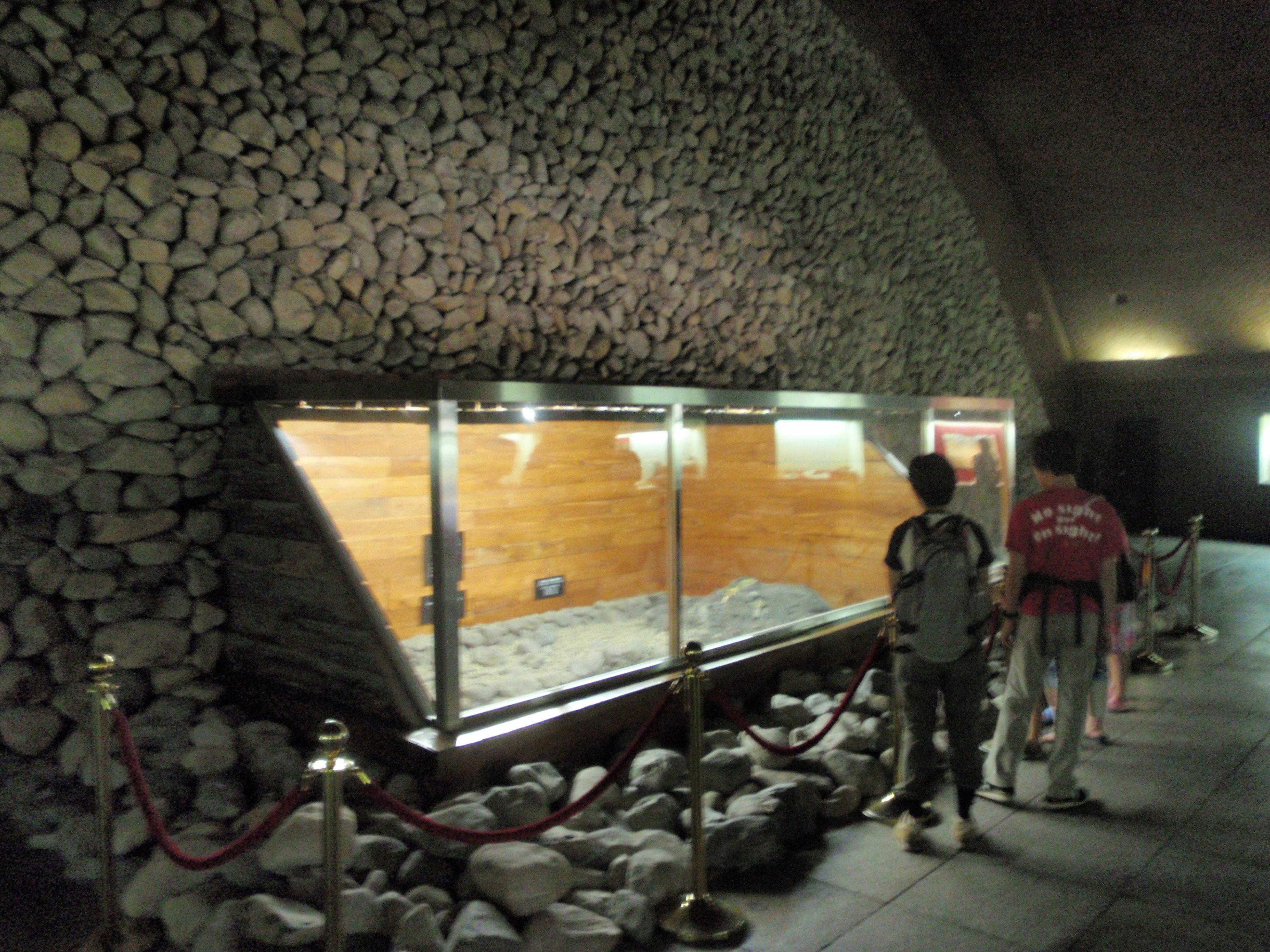 The next morning we went for a look around Gyeongju. It’s a town that seems to have a predilection for barley bread, with a shop selling it every five yards or so. We were going to look at the tombs rather than visit the bakers though, and in particular Cheonmachong, or the Heavenly Horse Tomb. This was the grave of some unknown royal from Silla kingdom and it had been excavated a few years previously giving visitors the opportunity to have a wander about inside. Disappointingly all the artifacts inside were replicas which made the sign stating that visitors should show respect towards what was an empty fake coffin a little bemusing. On the plus side, however, it was air-conditioned and so well worth the visit regardless of the authenticity of the artifacts.