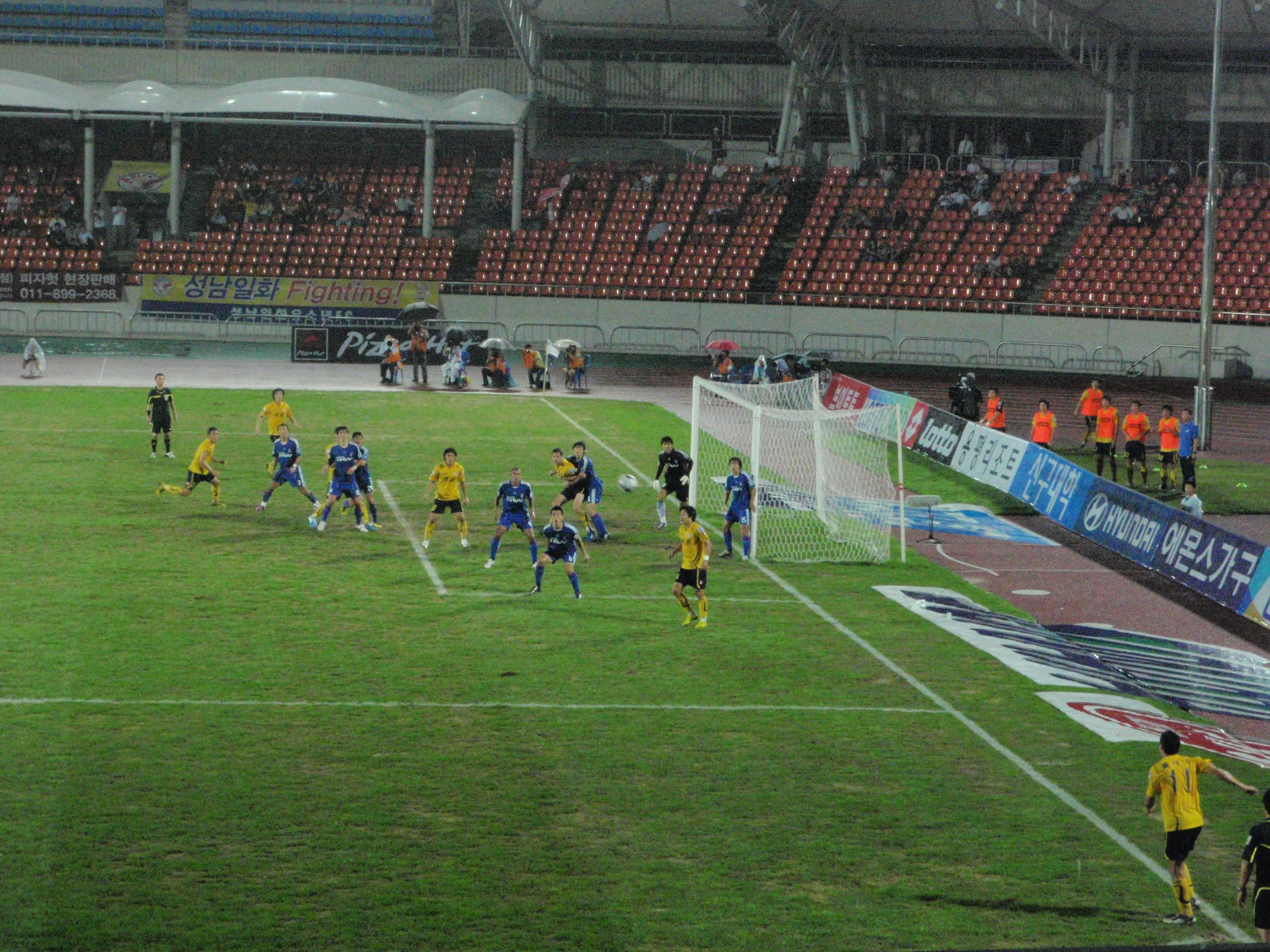 Seongnam is easy for me to get to. I left work at a quarter past six and forty minutes later I was at the Yatap subway station. The stop before Yatap is Moran, which is well-known in Seoul for the market that sells both live and cooked dogs. I’ve not been and had a look yet, possibly because they don’t have a football team, but at some point I’m sure I’ll get off the subway there and have a nose around. I won’t be eating any dog meat whilst I’m here though.