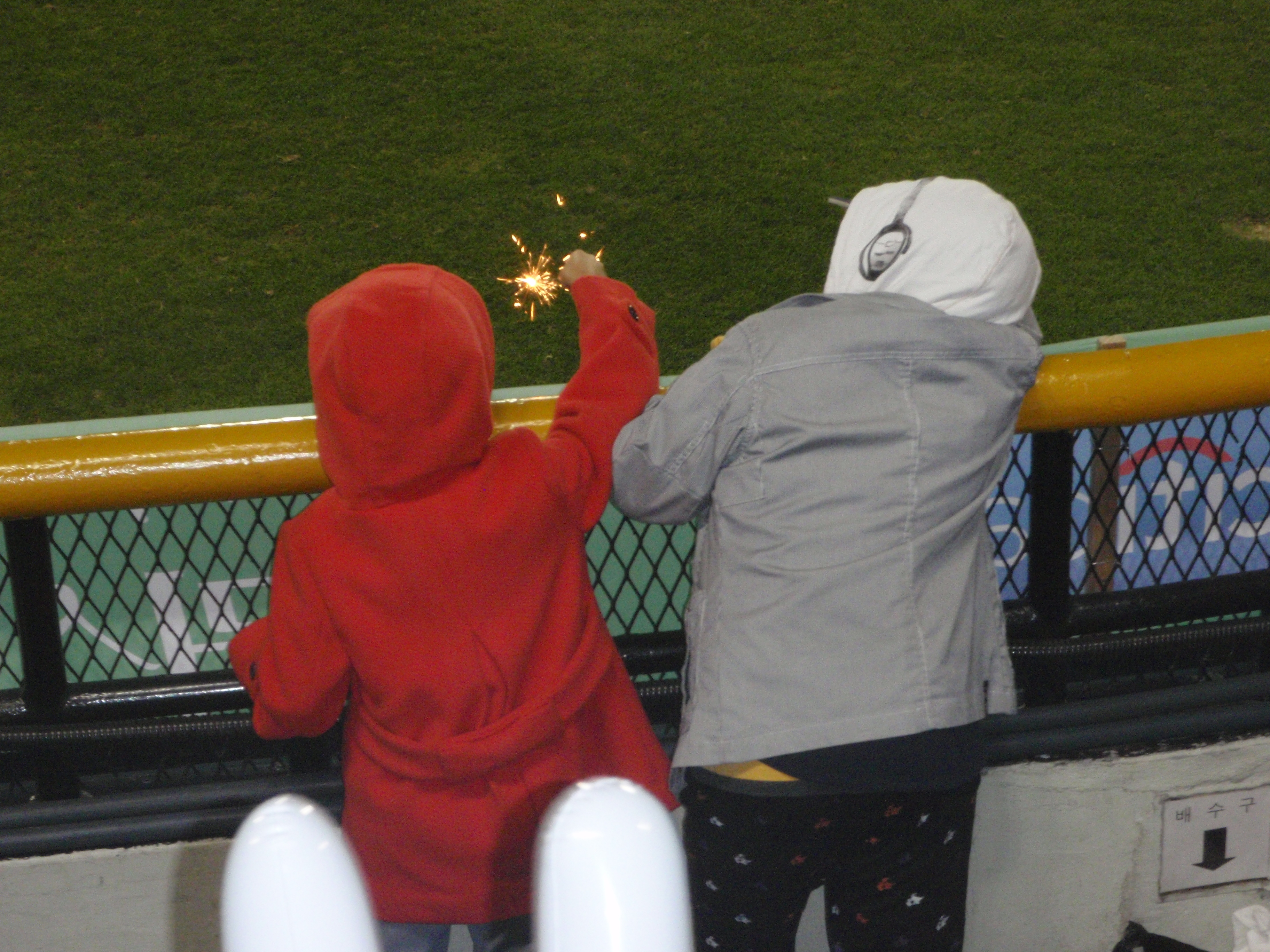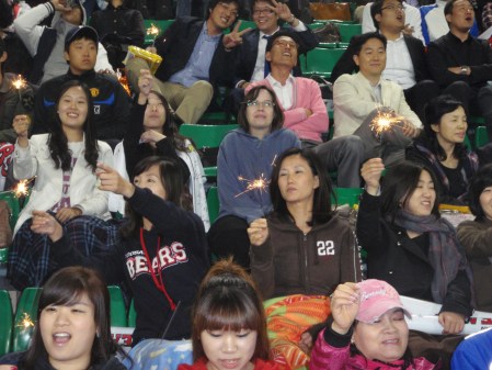 Finally the Doosan Bears fans managed to distribute sparklers to everyone in their section bar us.