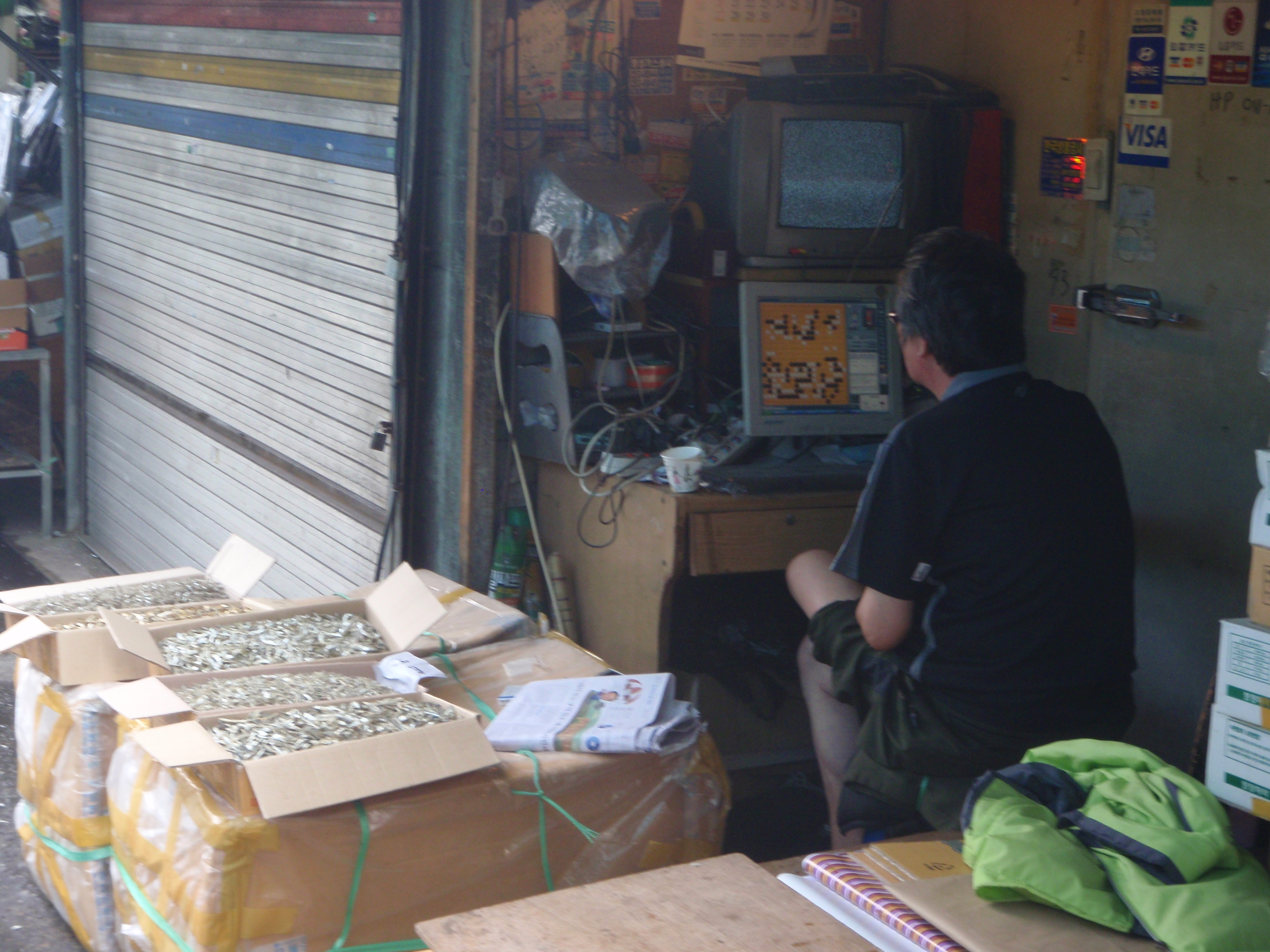 It was mostly in a large hall with lots of little stalls selling mainly live fish. They were sorted into the different species and kept in anything from buckets to tanks.