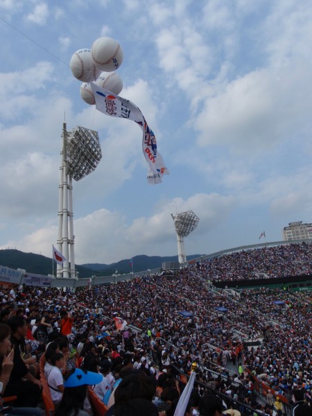 Fortunately, Doosan Bears managed to turn it around and a 6-5 away win on the Saturday brought the series score back to 2-1 and meant that a fourth game would be required after all. As all I had planned for the Sunday was going for a bike ride, I thought that I might as well get myself down to Busan instead to see a competitive game of baseball and visit a stadium and a city that I hadn’t been to so far.