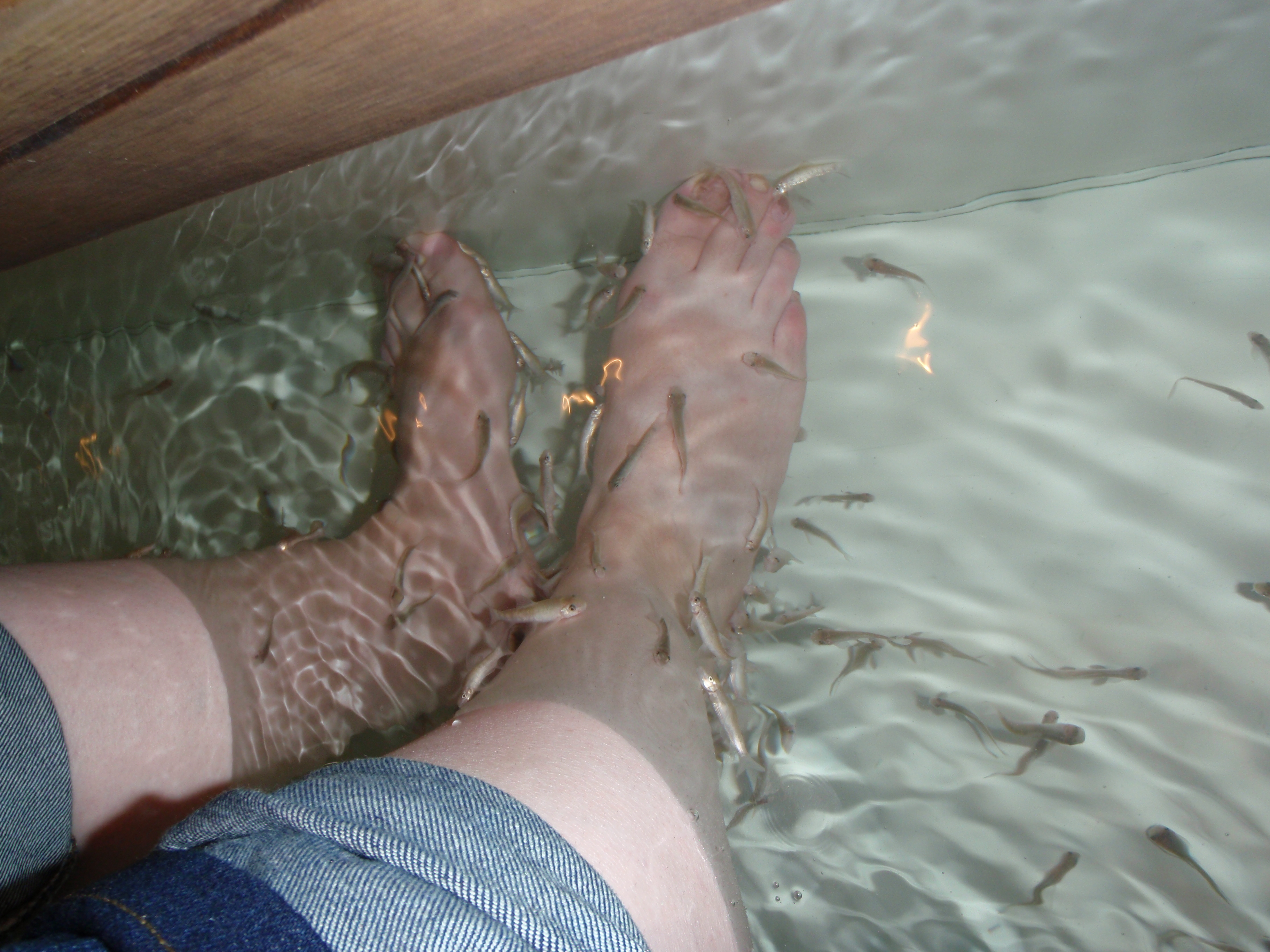 Anyway, the good news was that the creatures nibbling my feet in the coffee shop weren’t piranhas. They could give you a decent nip with their gums though and the effect of about thirty of them fighting over the skin on my feet was a curious sensation. It was quite ticklish but was accompanied with a sense of apprehension that one of them might just get carried away and take a toe off.