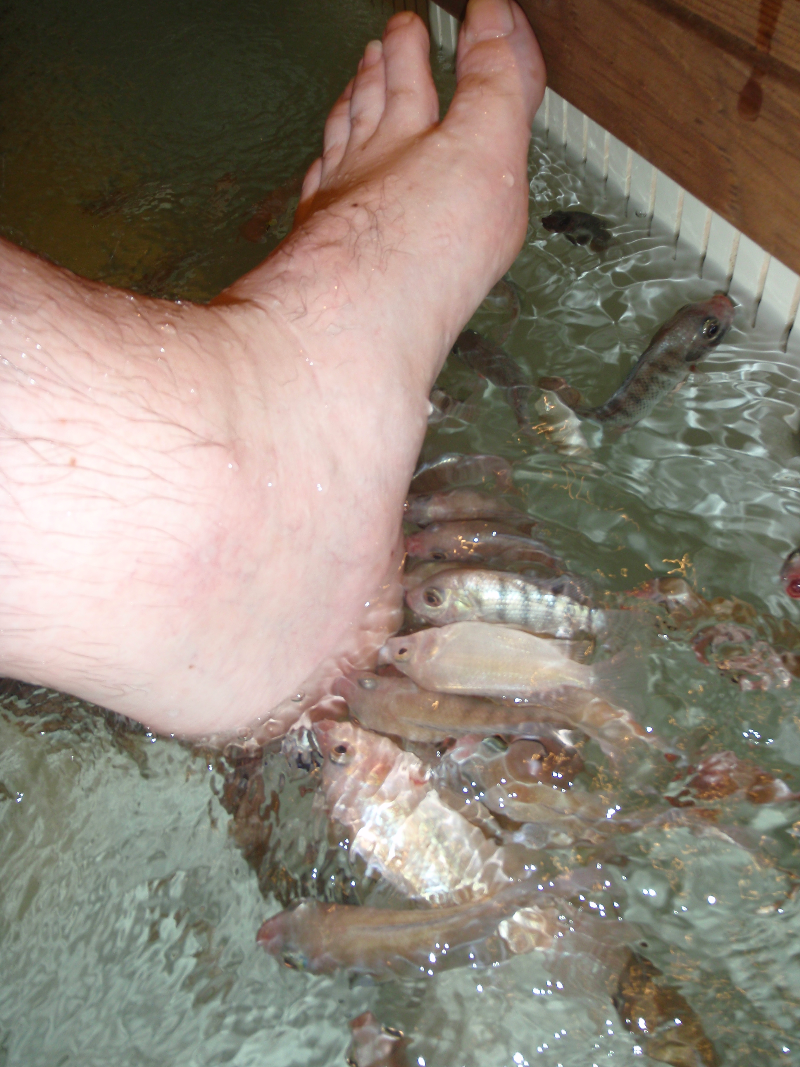 The fish then nibble away at your feet, removing surplus bits of dead skin, but leaving useful stuff like toes. I don’t know if the fish are specially trained or if it’s just instinctive, but they seem to know exactly what they are supposed to do without any prompting.