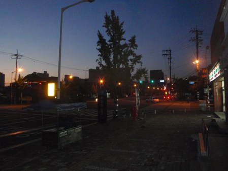 I was at the Ulsan Express Bus Terminal by about ten to six in the morning, looking to get a ticket on the first available luxury bus. Whilst the first normal bus went at six, I had to wait until twenty past for one with the more comfortable seating. I whiled away the time watching the sun come up outside the front entrance.