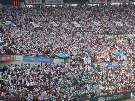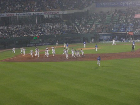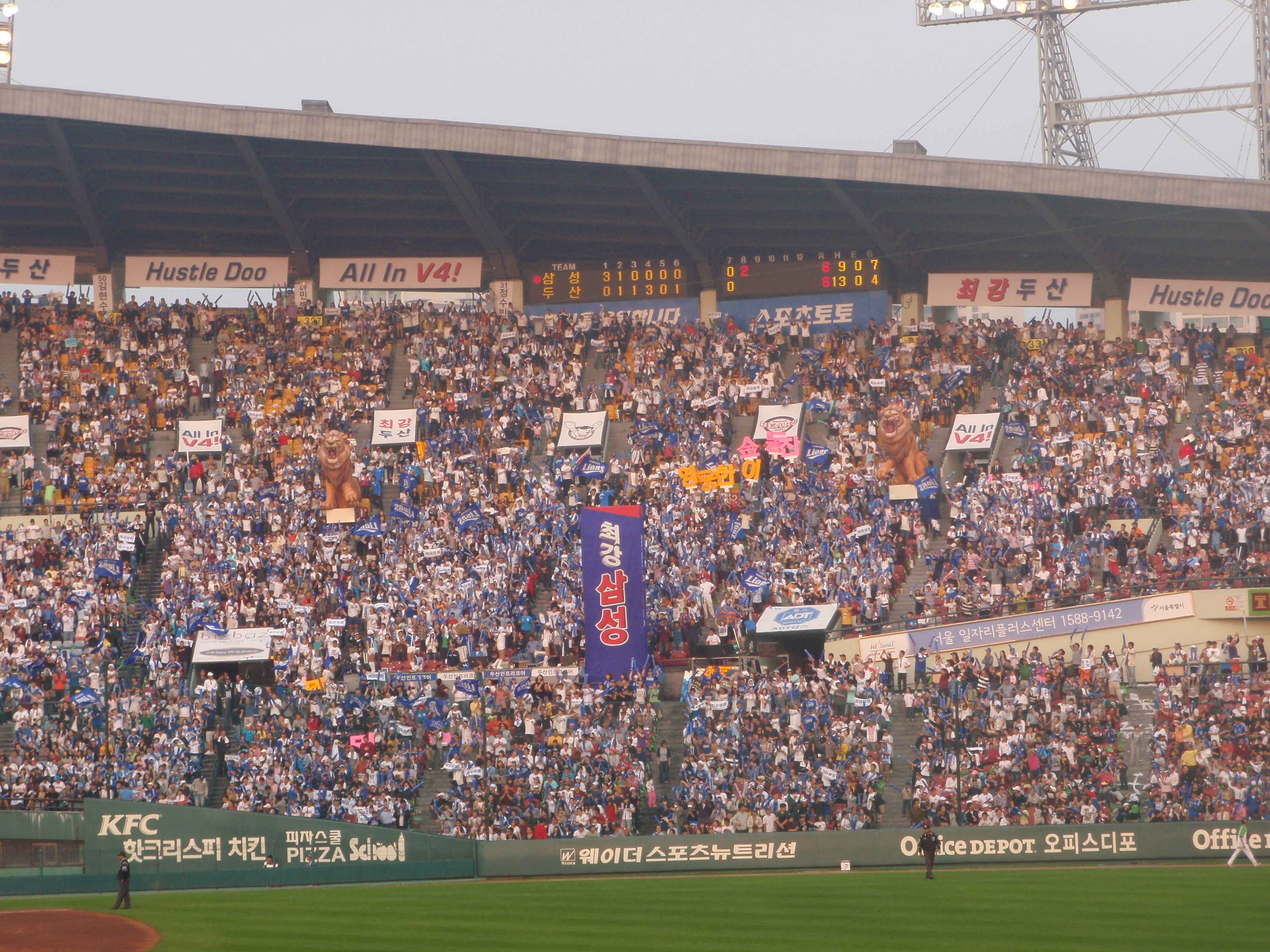 The lions were deflated and packed away, the remaining Doosan fans partied and we slipped away after almost five hours of a closely contested match. The next baseball game for me will be the second match of the Korean Series where the eventual winner of this contest will take on SK Wyverns at their Munhak Stadium next Saturday.