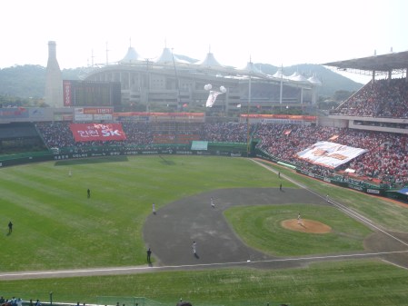 It was best-of-seven this time and SK were already one game in front after the previous evenings contest in the same stadium. The way it works is that the first two matches are played at SK’s Munhak stadium, with the next two at Samsung’s place in Daegu. If games five, six and seven are required then they are scheduled for the Jamsil stadium in Seoul.