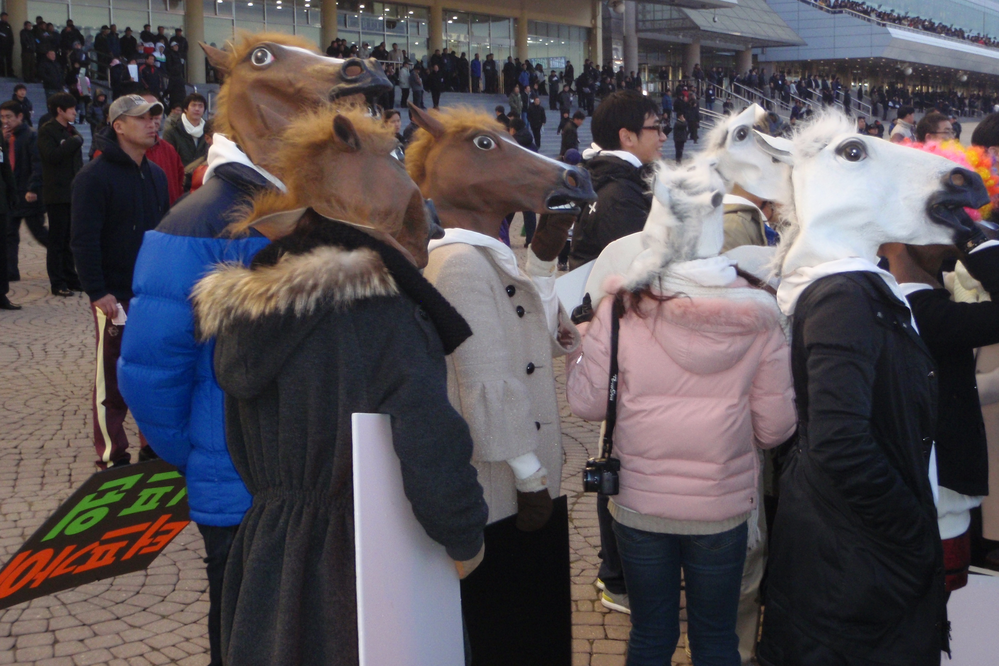 I’ve already explained how it all works at Seoul races in earlier posts, so I’ll just tell you the stuff that was different on this occasion. I’ll start with the temperature. It was bloody freezing, well below zero. I watched each of the races from outside, but I popped back into the Grandstand to warm up as soon as the horses passed the winning post.