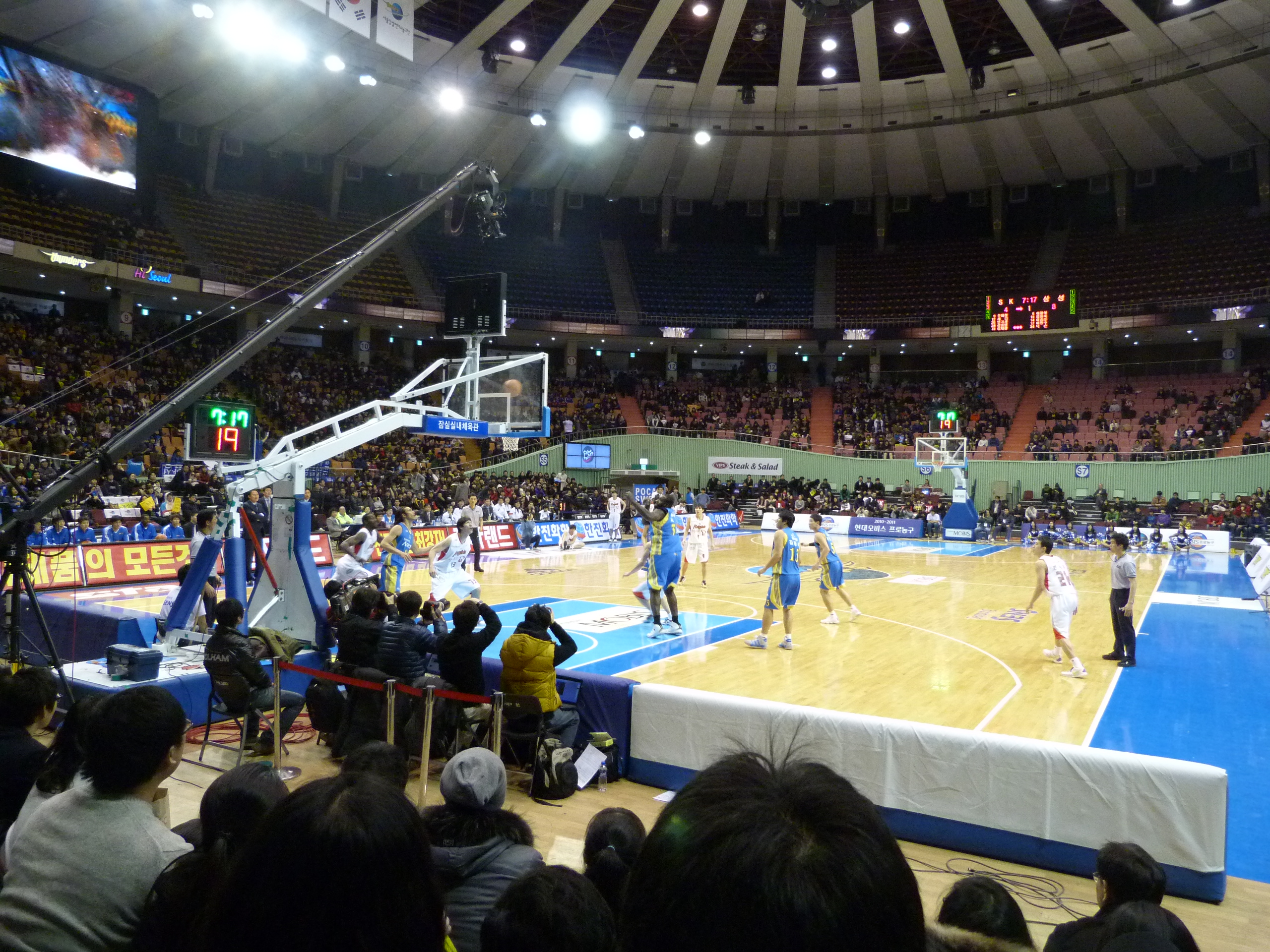 Right. The basketball. I’d tried to go and see Samsung Thunders the previous Friday but had got the venue mixed up. They actually play at Jamsil Gymnasium which part of the Sports Complex and next to the Olympic Stadium, the baseball stadium and confusingly, the Jamsil Students Gymnasium.  The SK Knights basketball team plays at the Jamsil Student Gymnasium and perhaps thats why I’d somehow got it into my head that Samsung Thunders were based a couple of miles away at the Gymnastics Hall in the Olympic Park.