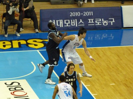 Mr. Ha has played in the NBA for Portland and even if he ’only’ measures 7’3“ he is still one of the tallest twenty players ever to play in the NBA. He is also the only Korean to have played at that level too, which I suspect will make him a bit of a superstar in his home country. He towered over the diminutive Thunders centre, Nigel Dixon, who at a mere 6’9“ could be described as a relative shortarse.