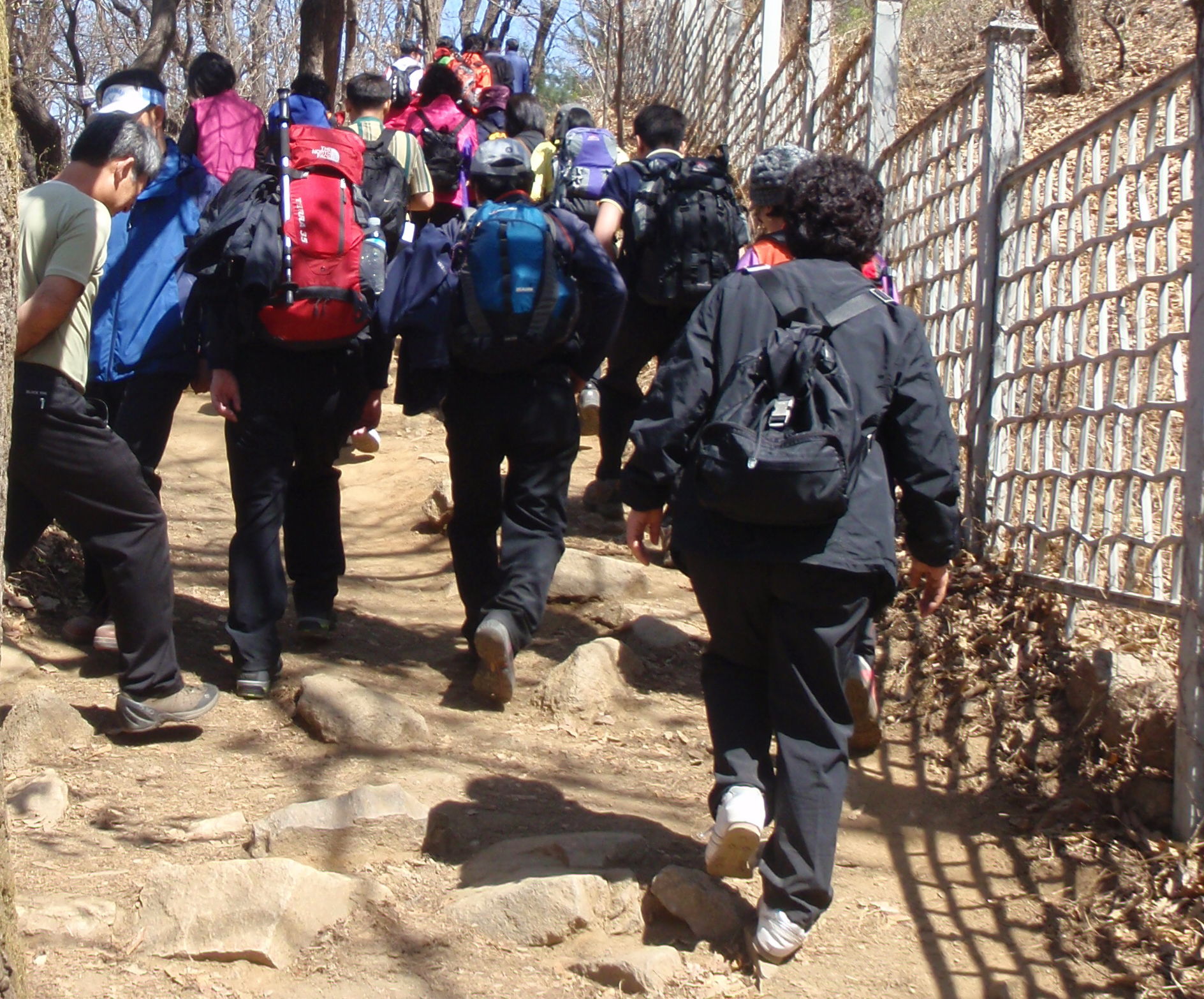 We were able to retrace our route from a week earlier, starting at Gwangnaru subway on Line 5 and walking through a park, then alongside the two thousand year old wall for a while. The route was even busier than the previous week with a number of hiking groups and most of Seoul’s pensioners out for a stroll.