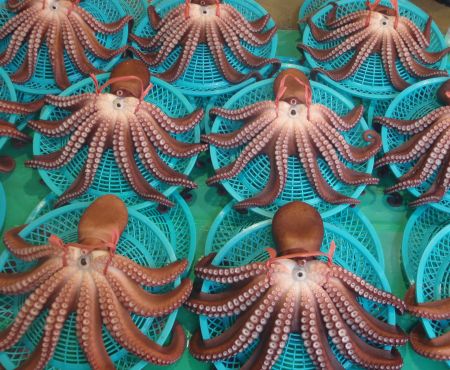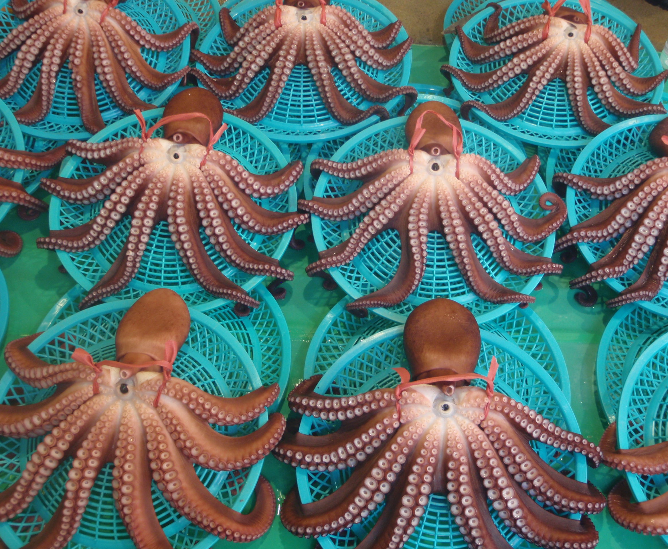 It’s mainly fish with lots of them still alive in tanks. I reckon that I’ve probably been to zoos with less livestock in my time. I thought these octopuses were pretty well trained not to run off. We did see some smaller ones trying to leap out of the bowl of water that they were in.