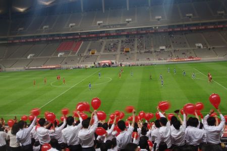 As kick-off time approached we found our seats in the East stand. There were a few hundred people there from my company, which is just as well as the attendance was a long way down on that of a league fixture. Yongin didn’t help much as they brought eight fans. Possibly the same eight that I’d seen in their recent away game at Goyang KB.