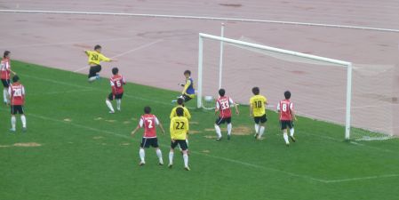 Asan got their first goal a minute into the game with a soft glancing header that I believe is usually described as something that the keeper could have thrown his cap on. Well, this keeper didn’t have a cap, although the header was so slow that he would have had time to nip home and get one if he’d wanted and still have been able to keep the ball out of the net.