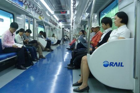 There is another way though. Line One of the subway lines extends to about eighty kilometres south of Seoul and finishes just beyond Asan.  I wasn’t in a rush and so I thought I’d give it a try. Five stops west from Yeoksam to Sandang on Line 2 were followed by ten stops south on Line 4 to Geumjeong. Both of those trains were pretty full but fortunately I got a seat fairly quickly.
