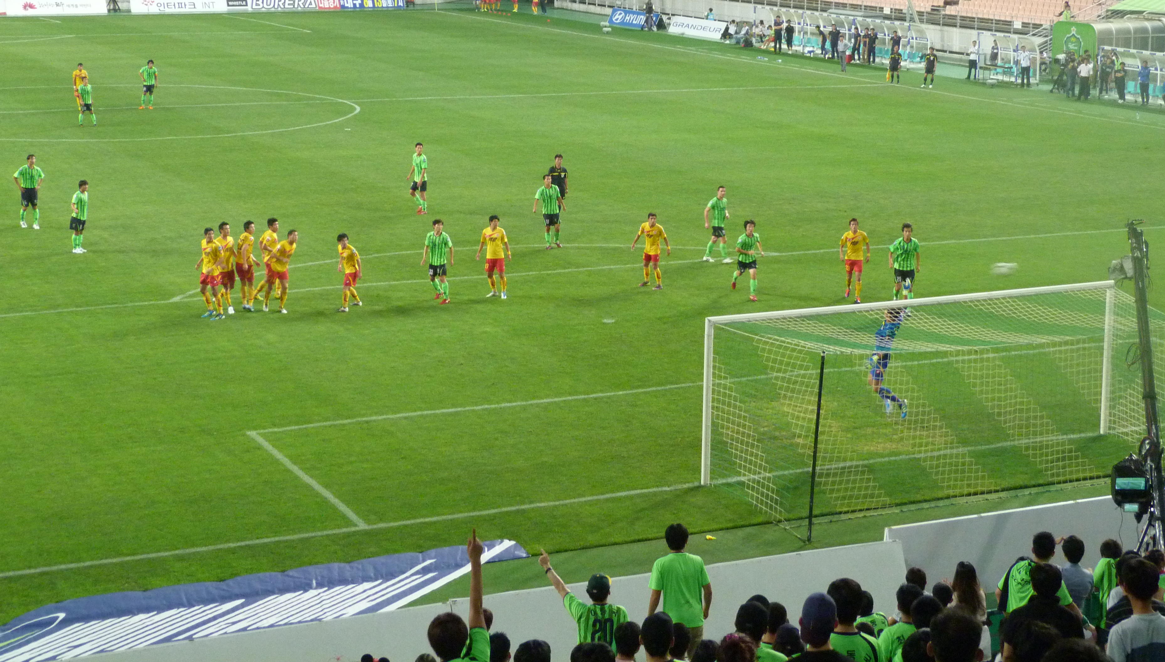 Fortunately Lee Dong Gook was in the starting line up. It would have been a bit rough if Tom had travelled six thousand miles to see him warm the bench. There was no place for Luiz Henrique but Croatian striker Krunoslav Lovrek was starting on the left side of midfield. It didn’t take Jeonbuk long to take the lead, an own goal from Jeong Ho Jeong putting the home team ahead.