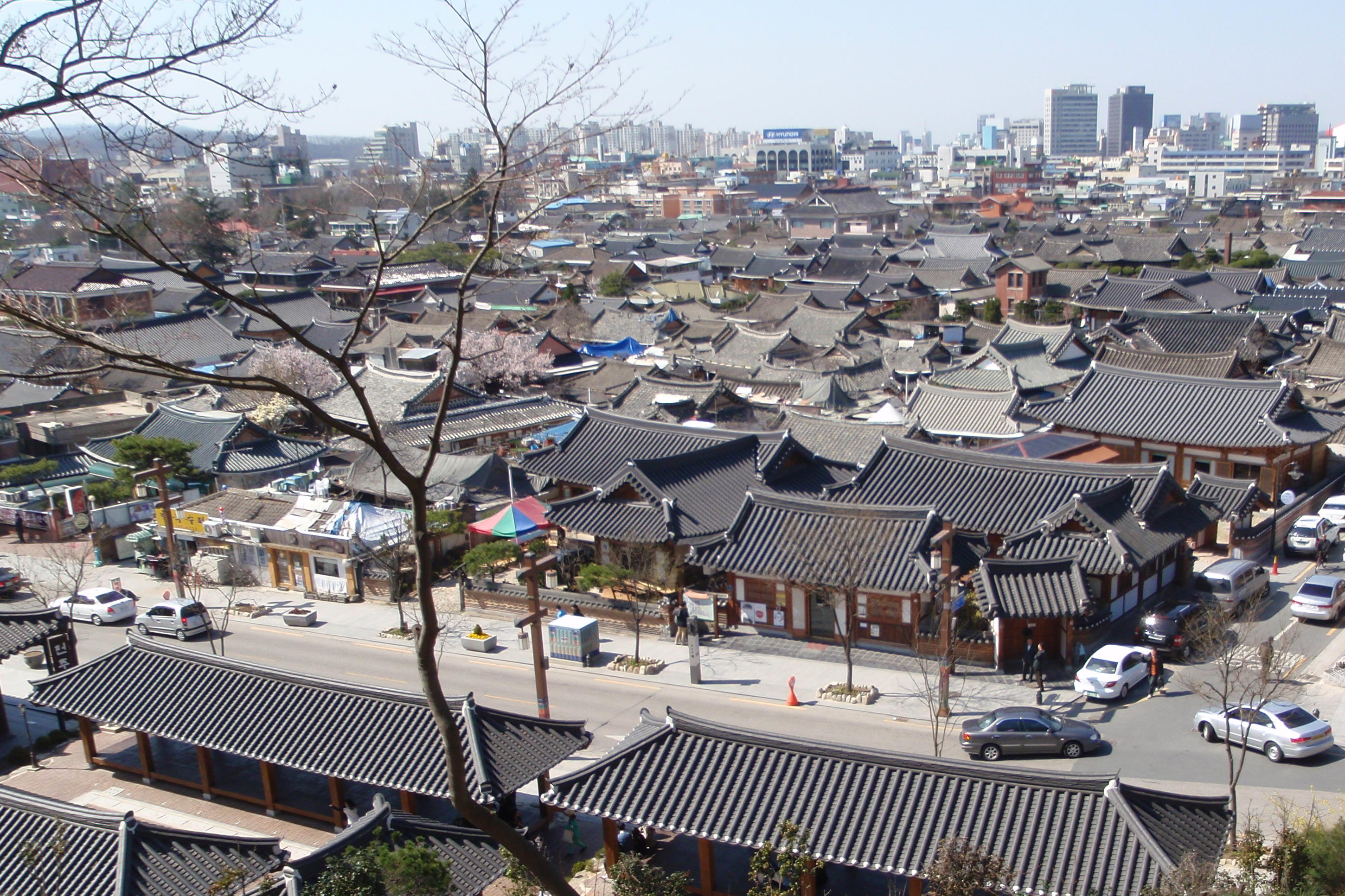 We got to Jeonju at about two o’clock. As the match didn’t kick off for another five hours we had a wander around the Hanok Village. On the face of it, this is a bit of Jeonju’s history, a place where you can see the old fashioned single-storey houses that most folk lived in before apartment blocks took over. The reality though is that they are being constantly refurbished and upgraded. It’s only about eight months since Jen and I were last there and already since then there are a couple of new Italian restaurants, a Paris Baguette cafe and a few more art and craft places.