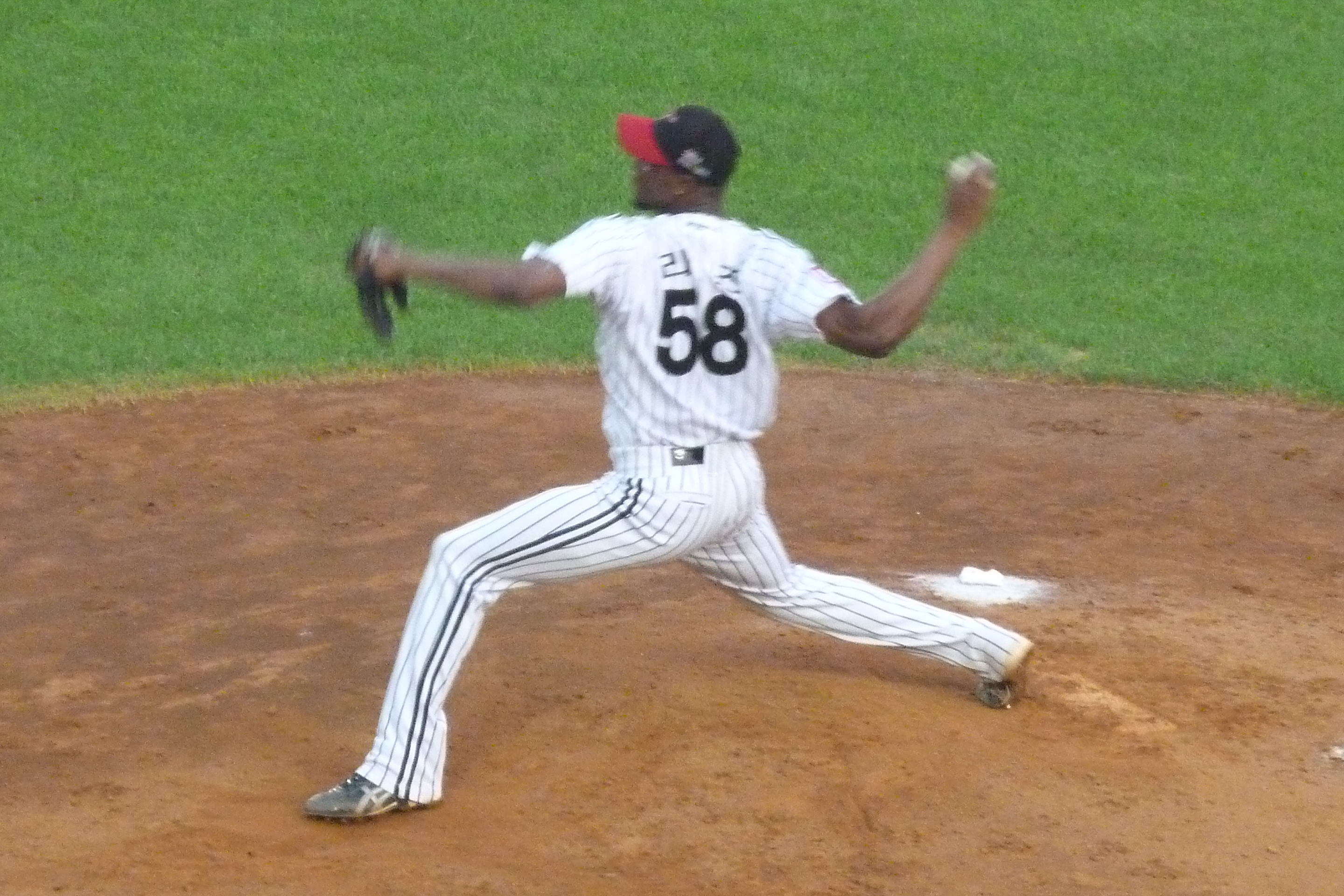 We’d missed the first half an hour or so and with two innings completed the game was still scoreless. Radhames Liz, the Dominican who had started over twenty times for the Baltimore Orioles earlier in his career, was pitching for LG. He looked very good early on but faded a bit towards the end. He conceded two runs in the fifth and another in each of the sixth and seventh innings before getting the hook before the start of the eighth.