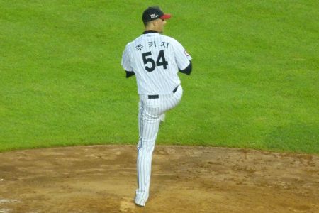 The American Ben Jukich started for LG and was pretty impressive rattling through eight innings with barely a hit and no runs against him. The game was as good as over when with just the one innings remaining his boss gave him a ‘job and knock’ and he was allowed to nip off home early.