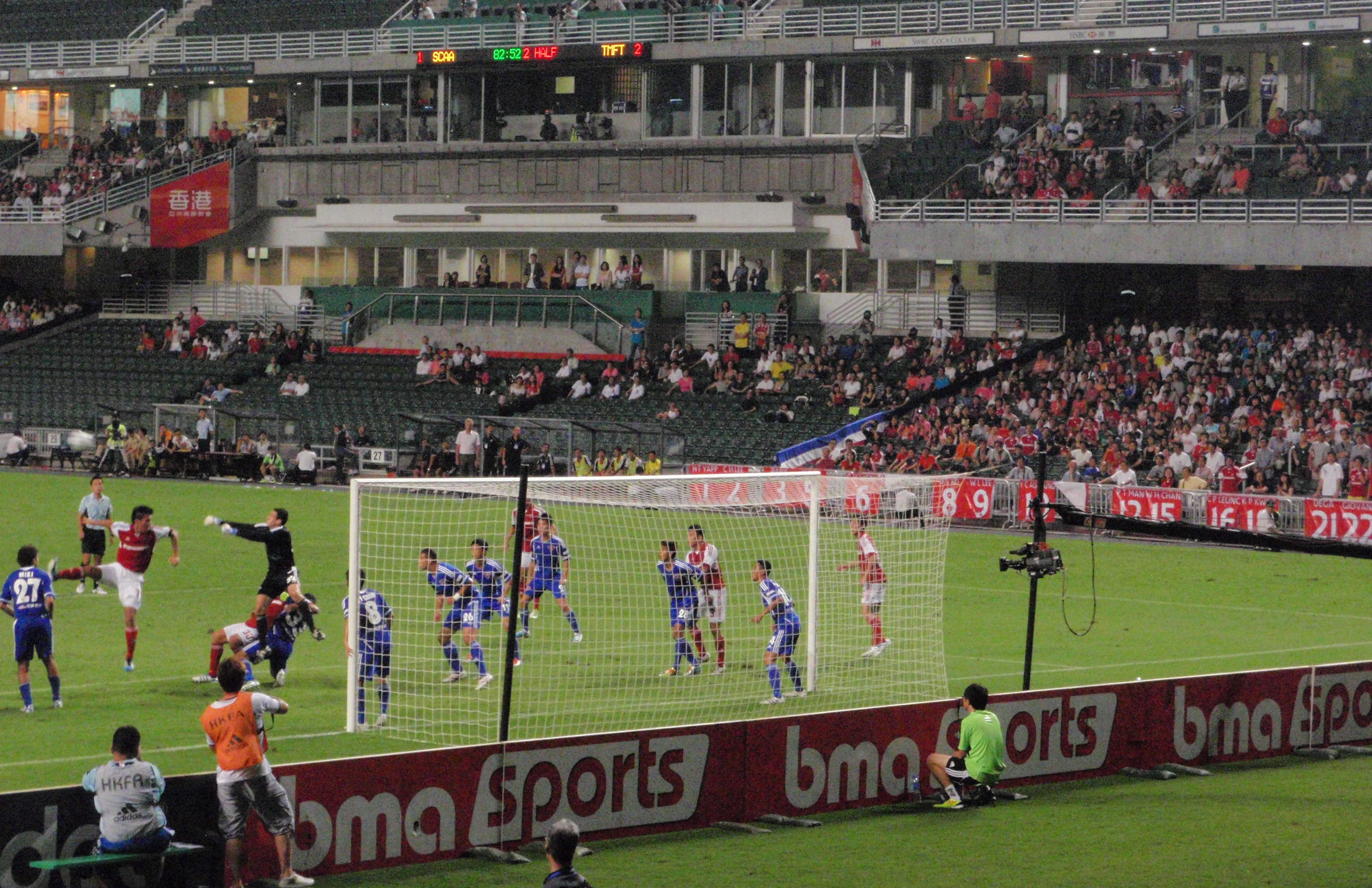 We moved seats at half time and I took my seventy Hong Kong dollar litre of Carlsberg behind the goal.