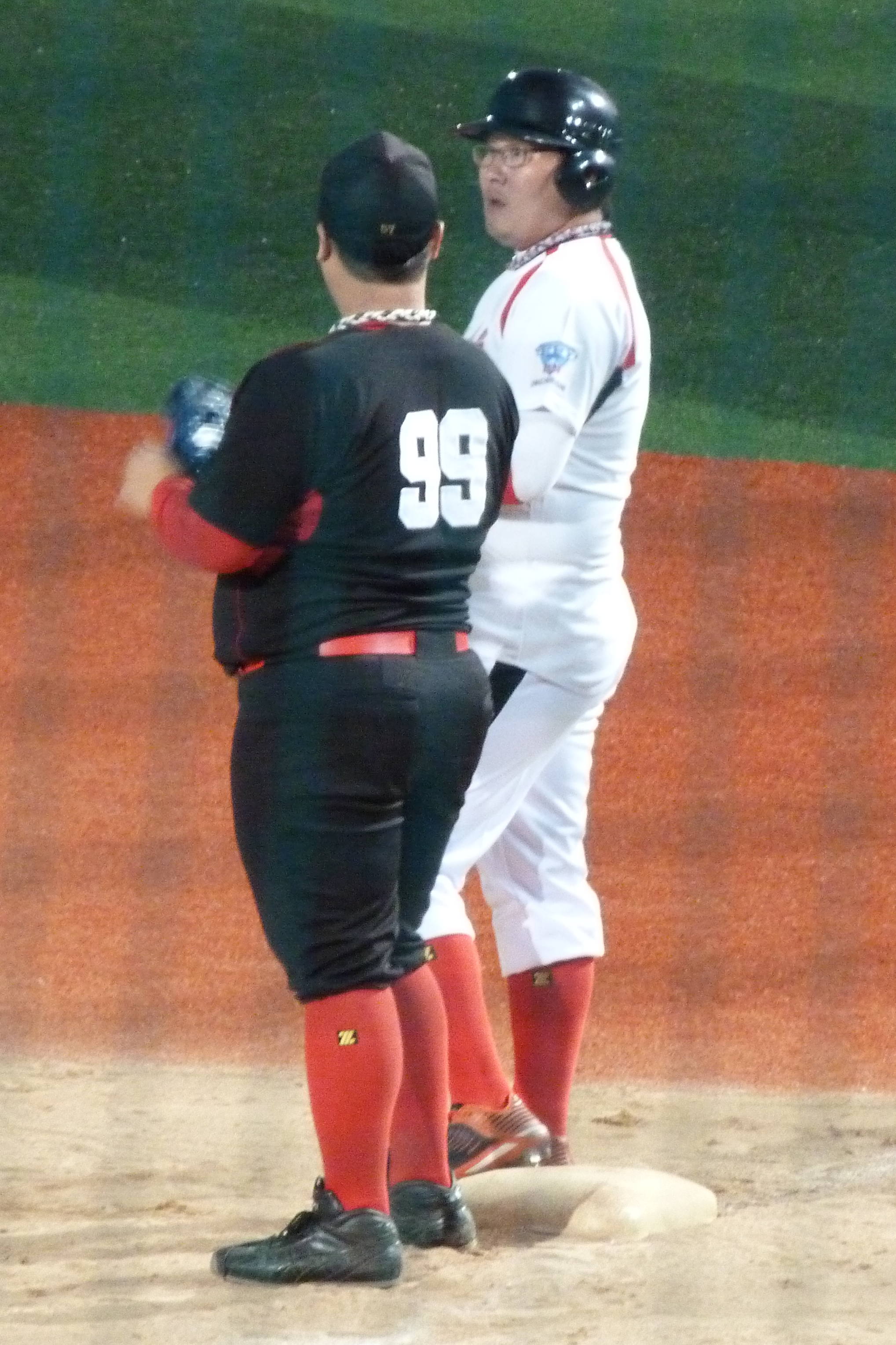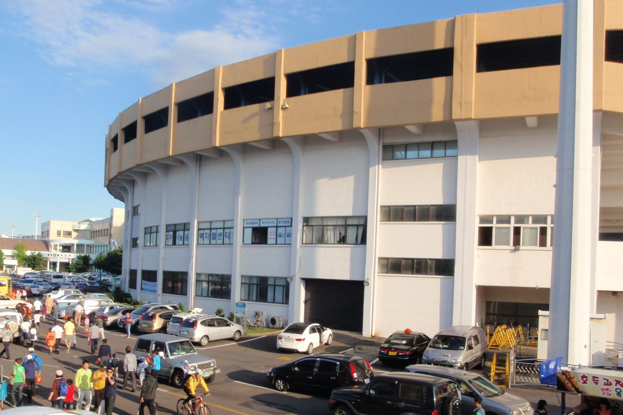 After watching the goalless draw between Jeju United and Jeonbuk Motors, Jen and I wandered out of the Jeju Ora Stadium and called into the baseball park next door. I’d have been happy just to have a quick nose around the pitch and empty stands but we got lucky again. There was another one of those sixty-four team tournaments going on for amateur sides, similar to the one that we had stumbled across in Chuncheon the week before.