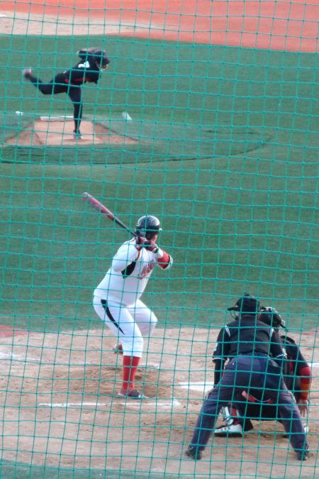 Zeeno were in black and batted first, with the Incheon starting pitcher varying his initial deliveries between 55 kmph and 84 kmph. After watching professional baseball it did seem incredibly slow and I was surprised that more of the balls weren’t whacked straight back over his head.