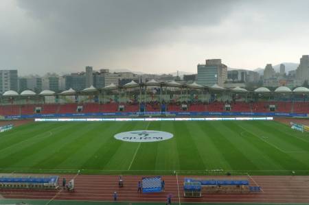I arrived at Seongnam in plenty of time and was in the ground a good hour before the scheduled two o’clock kick-off. I went for a seat in the West stand as that’s the one with the best roof. The sky had been overcast all morning and I was expecting rain before too long.