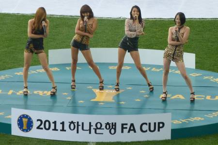 At the interval we were treated to a performance by girl band Sistar. There was a buzz of excitement in the West stand that was far greater than anything the football had produced and it wouldn’t surprise me if some of the teenagers in the crowd were only there to see their idols lip-synch their way through their latest hit. It was probably just as well that the microphones weren’t switched on as mid-way through Sistar’s performance the rain started to fall heavily once more.