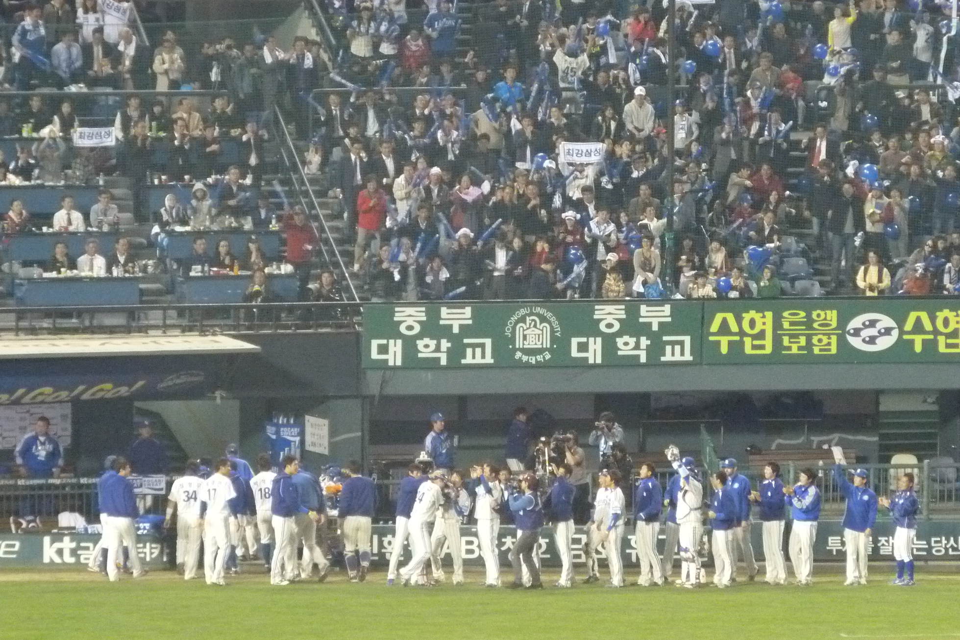 The Korean Series is played over the best of seven games. This year the first two games took place at the Lions stadium in Daegu and the next two at Munhak, home of the Wyverns.