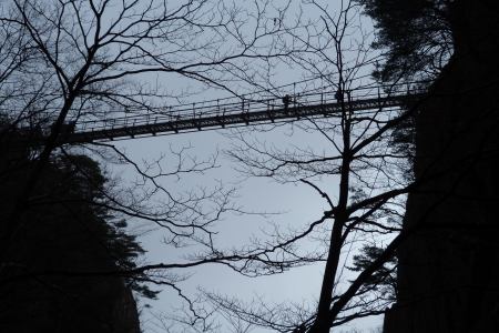 Our route wasn’t too far away from the cable car, just closer to the ground and after about an hour we reached the point that the old grannies and small children had got to with a lot less effort. To give them something to see without the need for them to hike to the top, a suspension bridge had been built together with what I suppose you could describe as a ‘suspension staircase’.