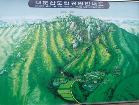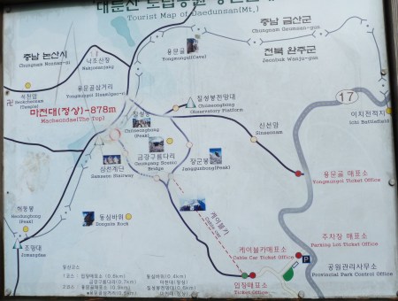 Daedunsan’s advantage over Maisan though is that the hiking didn’t look as strenuous. Despite all of the walking that we’ve been doing on weekends I’ve gotten a little out of shape. I had a medical recently and from what I can gather too much of my body is made up of fat and not enough of it from muscles or bones. I’m not really sure what I can do to increase my bone content apart from maybe eat more chalk, but on this occasion the slightly easier hike seemed sensible.