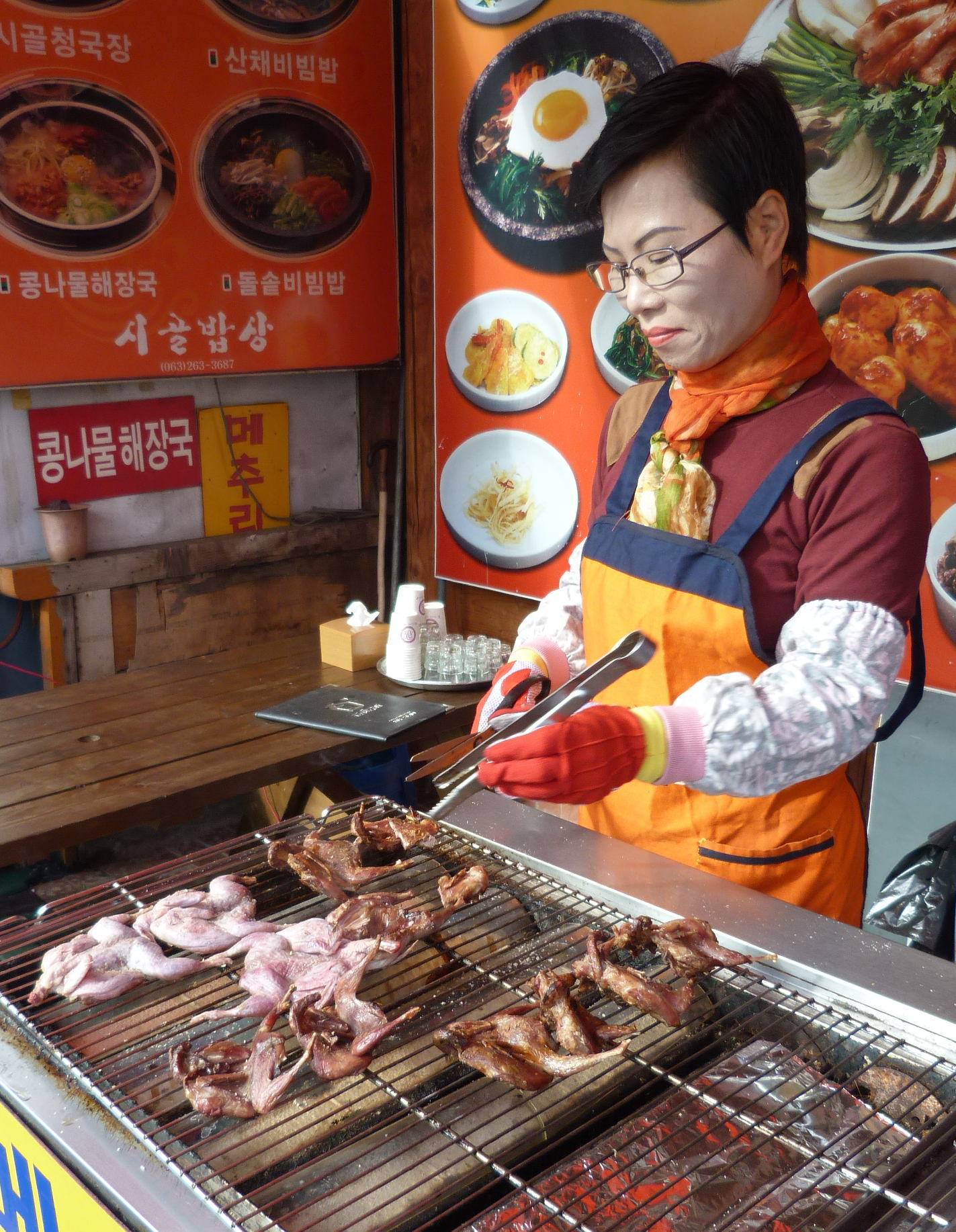 There are a few hotels at the bottom of the hill and a row of shops selling mainly hiking gear and crappy souvenirs. There are also plenty of restaurants and food stalls, plus what appeared to be a couple of nightclubs. We bought a pair of cooked quail at one of the stalls to go with our lunch. You know as soon as you look at them that they will be more effort than they are worth to eat, but at 2,500 won a go I find it hard to walk past things like that.