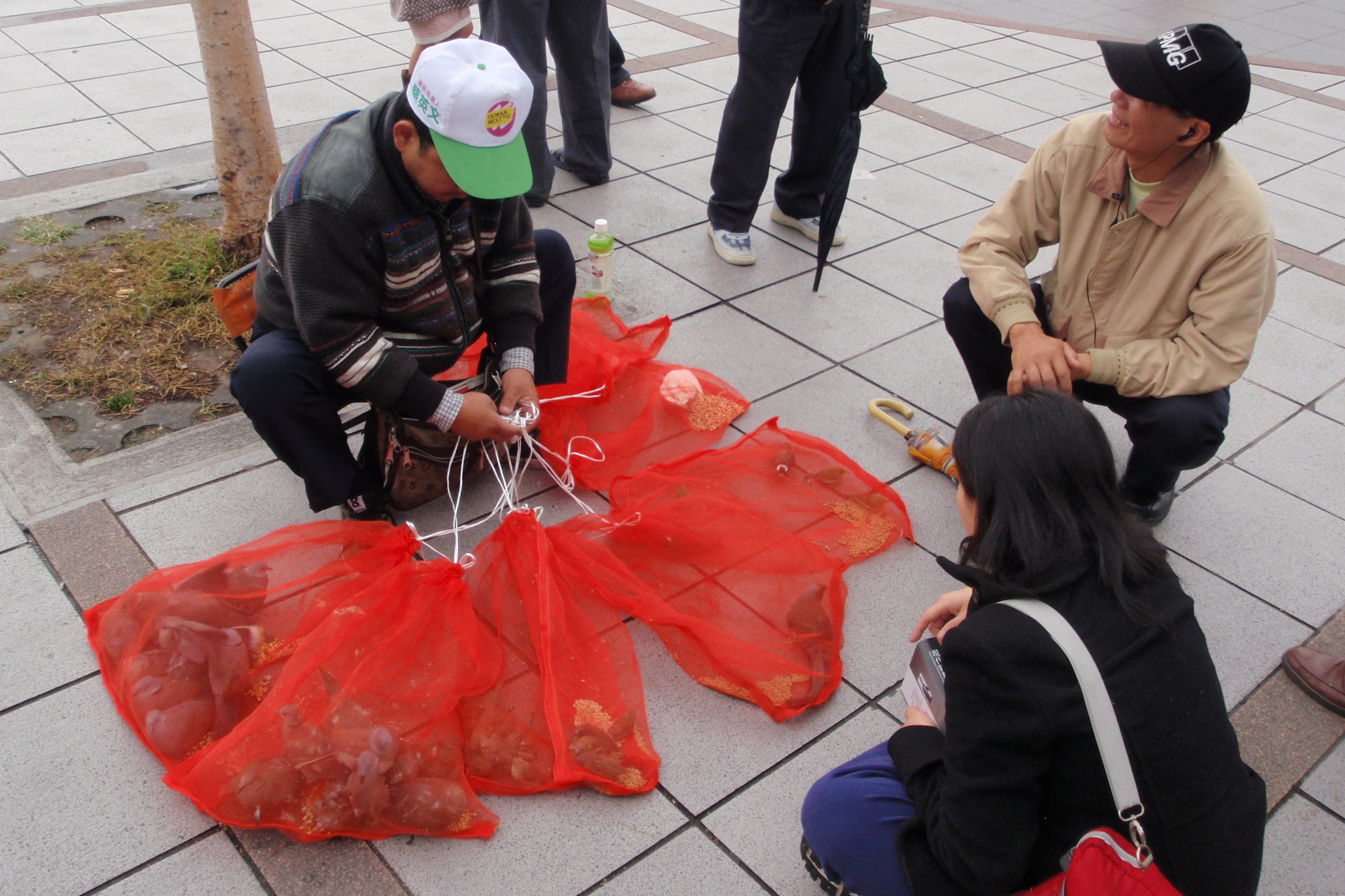We did see a bloke selling live birds to people so that they could briefly hold them before releasing them. I suspect it’s for good luck or something. One fella bought about twenty quids worth whilst we were watching. I suppose it’s healthier than spending it on beer and fags, although I doubt he’d get much sympathy if he came down with bird flu.