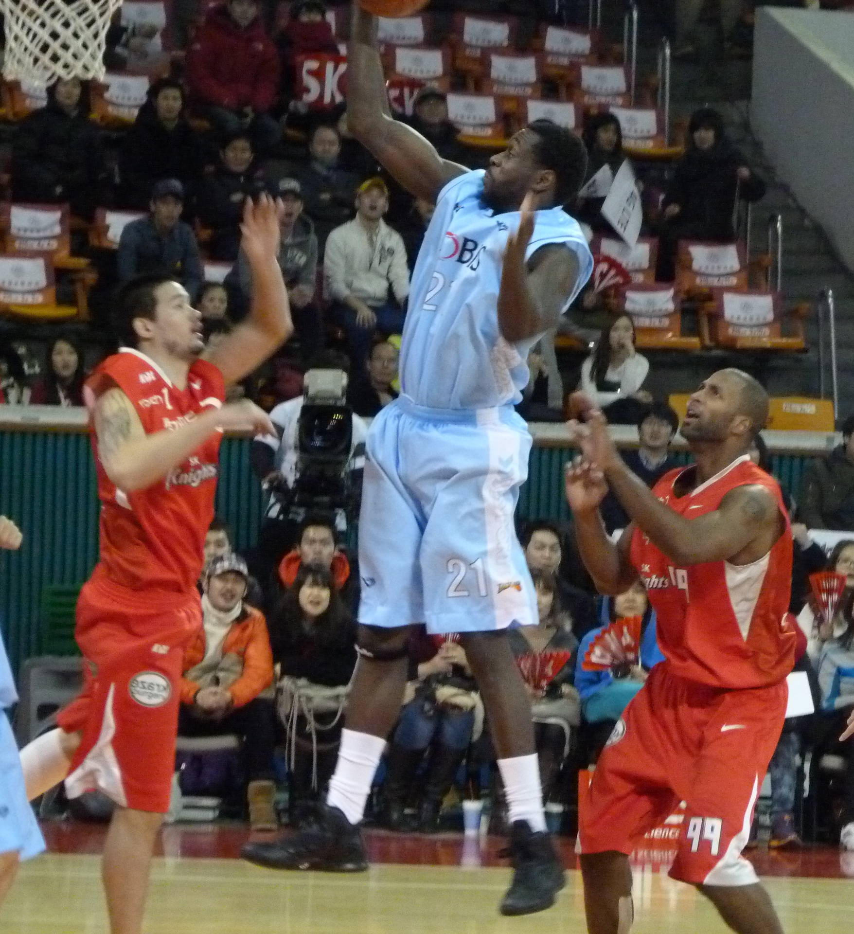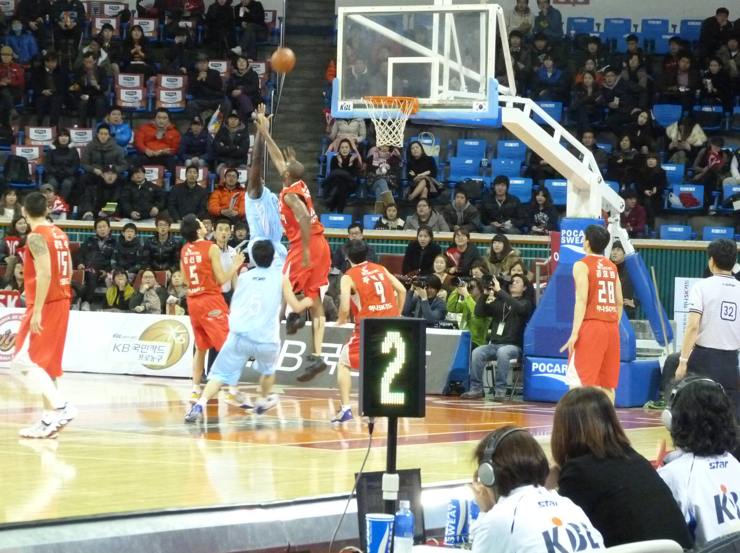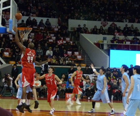 Right, the basketball. I only really went along to get out of the apartment. It’s been as cold as -17 in Seoul so it’s tempting not to go outside very much. I don’t like being stuck indoors though and as SK play within about fifty yards of exit 8 of Sports Complex subway station, I thought I’d chance the sub-zero temperatures.