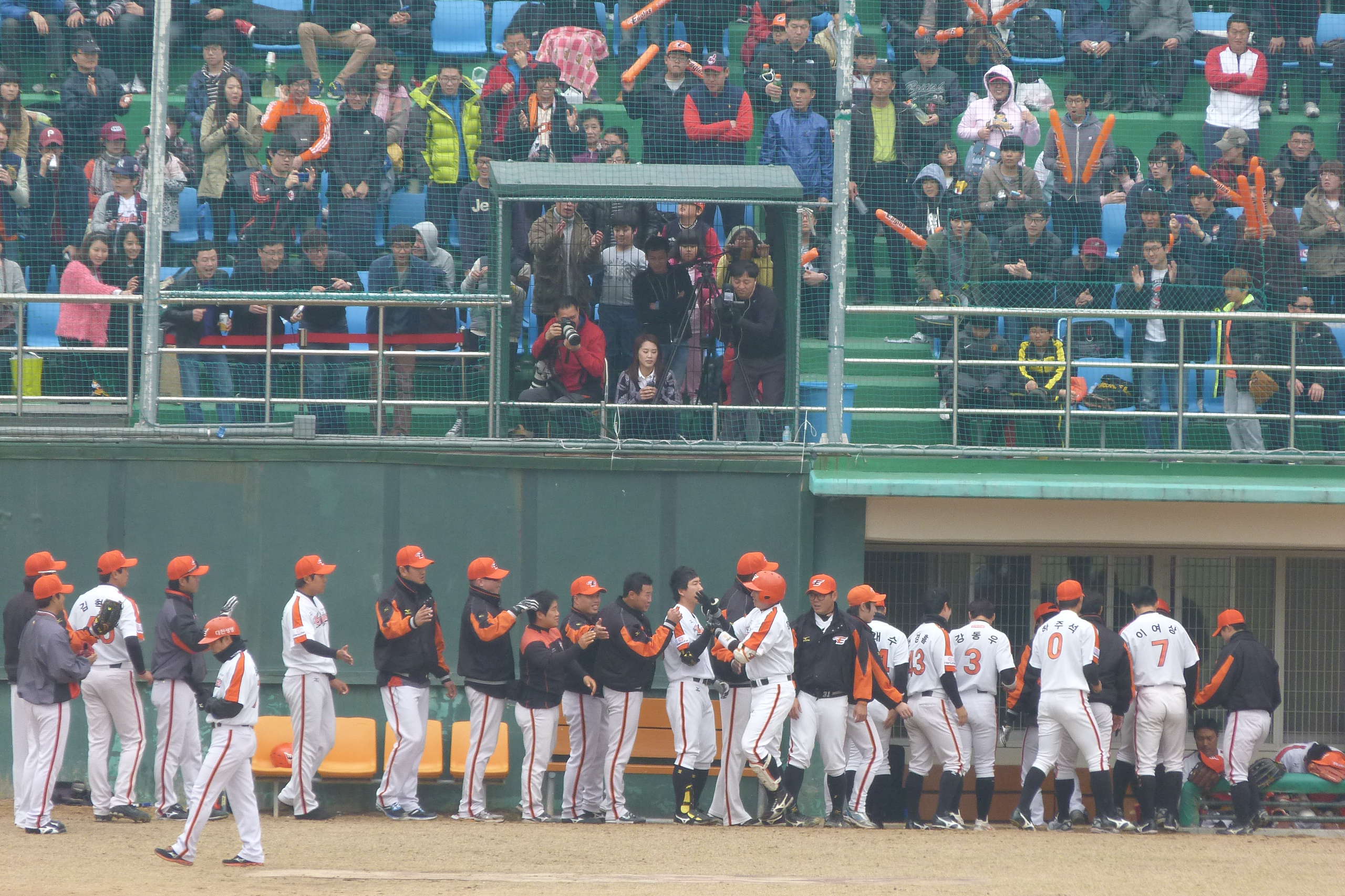 Hanwaha got off to a decent start in the first innings with the popular Kim Tae Kyun cracking a three run homer to within a few yards of me.