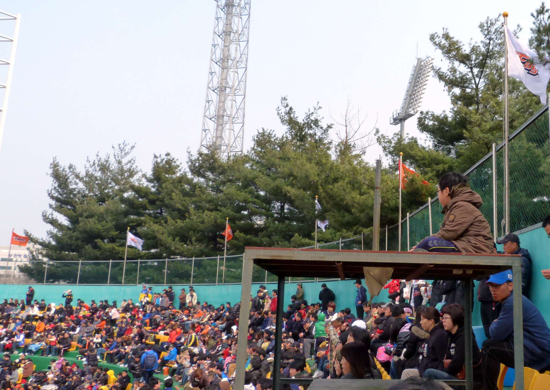 I was quite surprised by how busy it was. This was a pre-season game between two teams that aren’t particularly well supported. Although I suppose that Hanwha playing in Cheongju rather than their usual stadium at Daejeon probably had a lot to do with it. As did free admission and people pining for some baseball after the winter. So I shouldn’t have been suprised really.