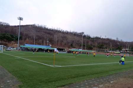 I reckon the camping ground means that it could be a great fixture for away fans who fancy making  a weekend of it. It’s an ideal location for survival enthusiasts like Bear Grylls too, with all those big city five star hotels close by if it gets a bit chilly during the night. Today’s visitors were Seoul Martyrs though and so I doubt that many of the visiting fans would have brought their tents with them.