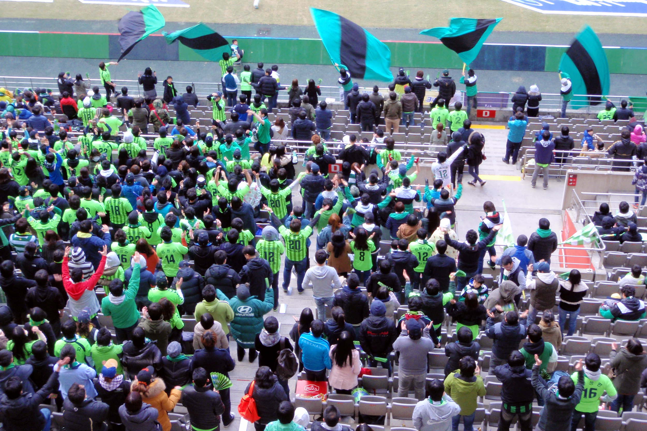 As I went through the gate I noticed that Jeonbuk shirts were being given away for free. I joined the queue, but was told that they were only for employees of Hyundai Motors and their families. Judging by the amount of shirts being given away, half the factory must have been attending the game. Despite the decent turnout by the Jeonbuk fans, the overall attendance was poor. It was announced as 25,811, but it was easy enough to work out that the true figure was less than half of that.