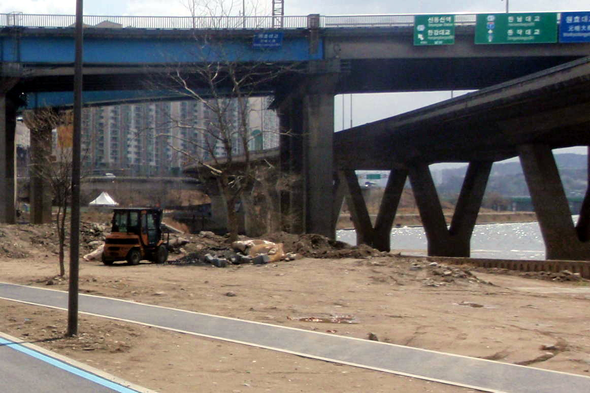 There wasn’t a great deal going on that we hadn’t seen on previous walks along the Han, apart from a much increased security presence. There was a Nuclear Summit due to take place the following day that the likes of Obama would be attending and it looked as if every copper in Korea was on duty. We passed three coachloads of police by the COEX centre and as we walked along the river we saw policemen on bikes, in boats and guarding every bridge we passed. Helicopters constantly flew overhead.