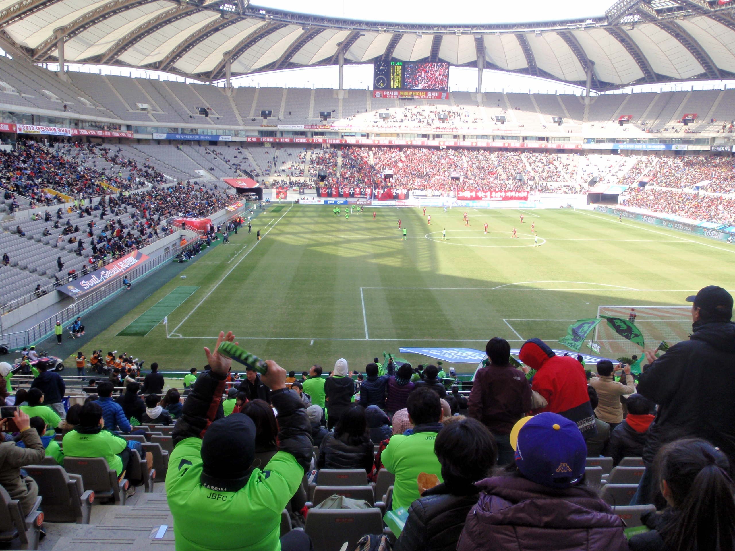 At half time I moved upstairs, partly for the change of view but mainly for a bit of peace and quiet. The woman who had been sat behind me in the lower tier had been getting a little too excited in the first half whenever Jeonbuk were on the attack. On the occasions when they got near to the Seoul penalty box, she sounded as if she was close to orgasm. I thought it only polite to give her some privacy.