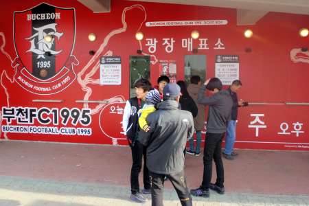 The last time I’d been to Bucheon I’d taken a trail through some woods to reach the ground. This time though, I didn’t have time and so after getting off the subway at Sosa I just followed the road for twenty five minutes to Bucheon’s stadium at the Leports Complex. On my previous visit I’d arrived only to discover that the game had been switched to the opposition stadium but thankfully this time I could see the players walking out onto the pitch through a gap in the stand.
