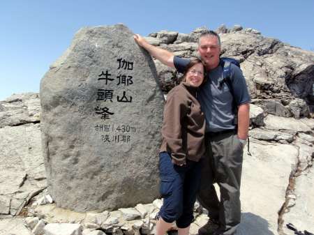 Three hours after setting out we were on top of Sangwangbong. For a few minutes we were the only people up there before someone very handily turned up to take our photo.