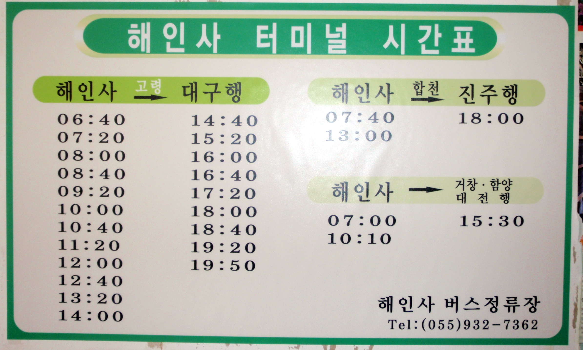 As I’m supposed to be going up Poland’s highest mountain in the summer when I’m over there for Euro 2012, I thought that it was about time to ease my legs back into it. Jen and I had been to Cheongdo to watch the bullfighting the previous day and when we had seen enough of that we got the train to Daegu. A taxi took us across the city to the Seobu bus terminal and from there we caught a bus to Haeinsa in the Gayasan National Park. The bus goes every forty minutes, costs 6,600 won and takes about an hour and a half.