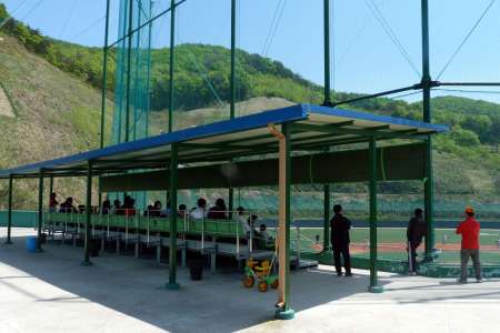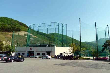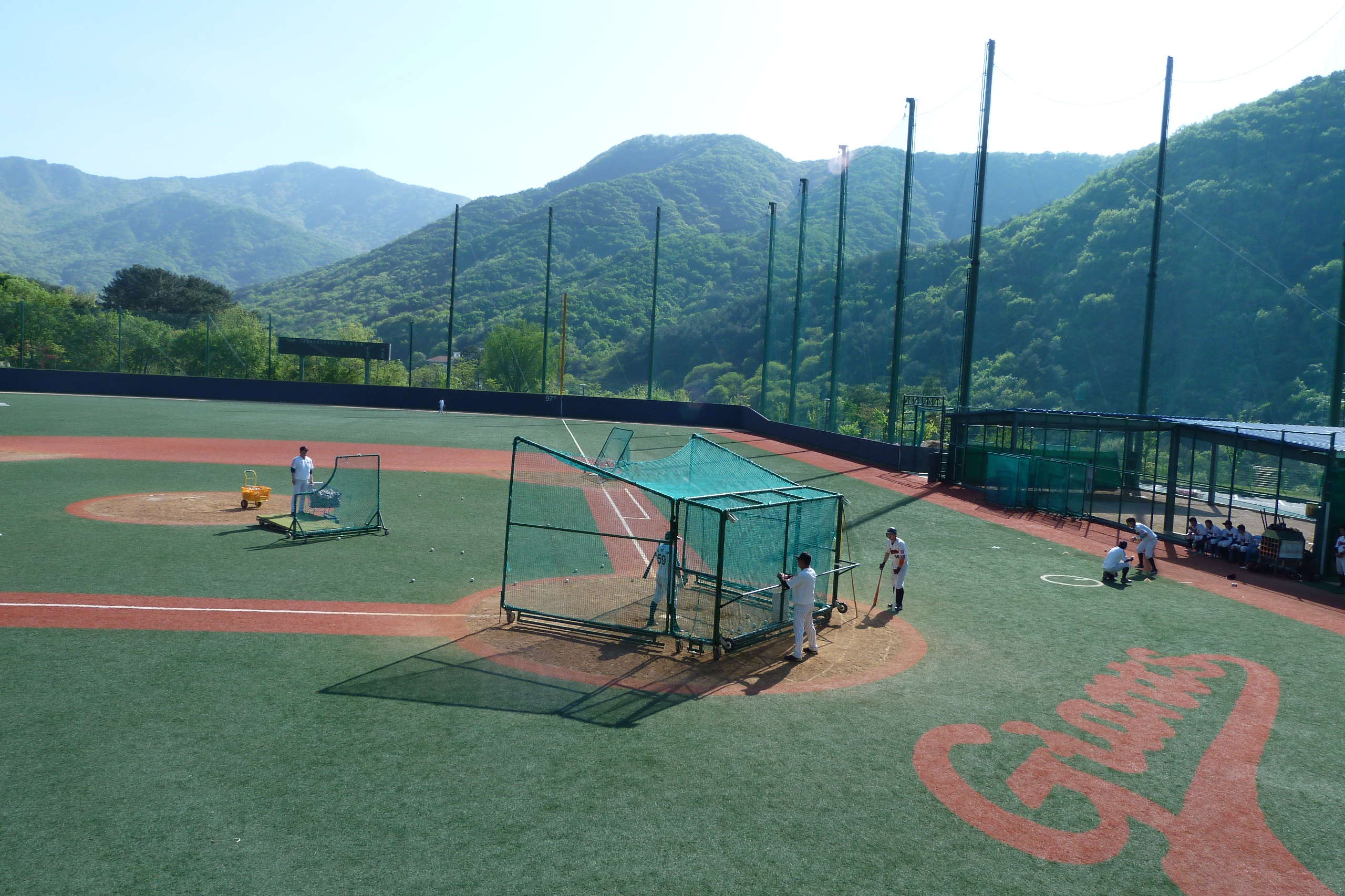 Sangdong is in the middle of nowhere, or rather it’s an area filled with mountains, timber merchants and judging by the smell, the odd pig farm. Twenty minutes and thirteen thousand won later the taxi dropped me off at Lotte Giants training ground. It looked as if they have an indoor facility the size of an aircraft hanger, plus the outdoor pitch that the game was taking place on.